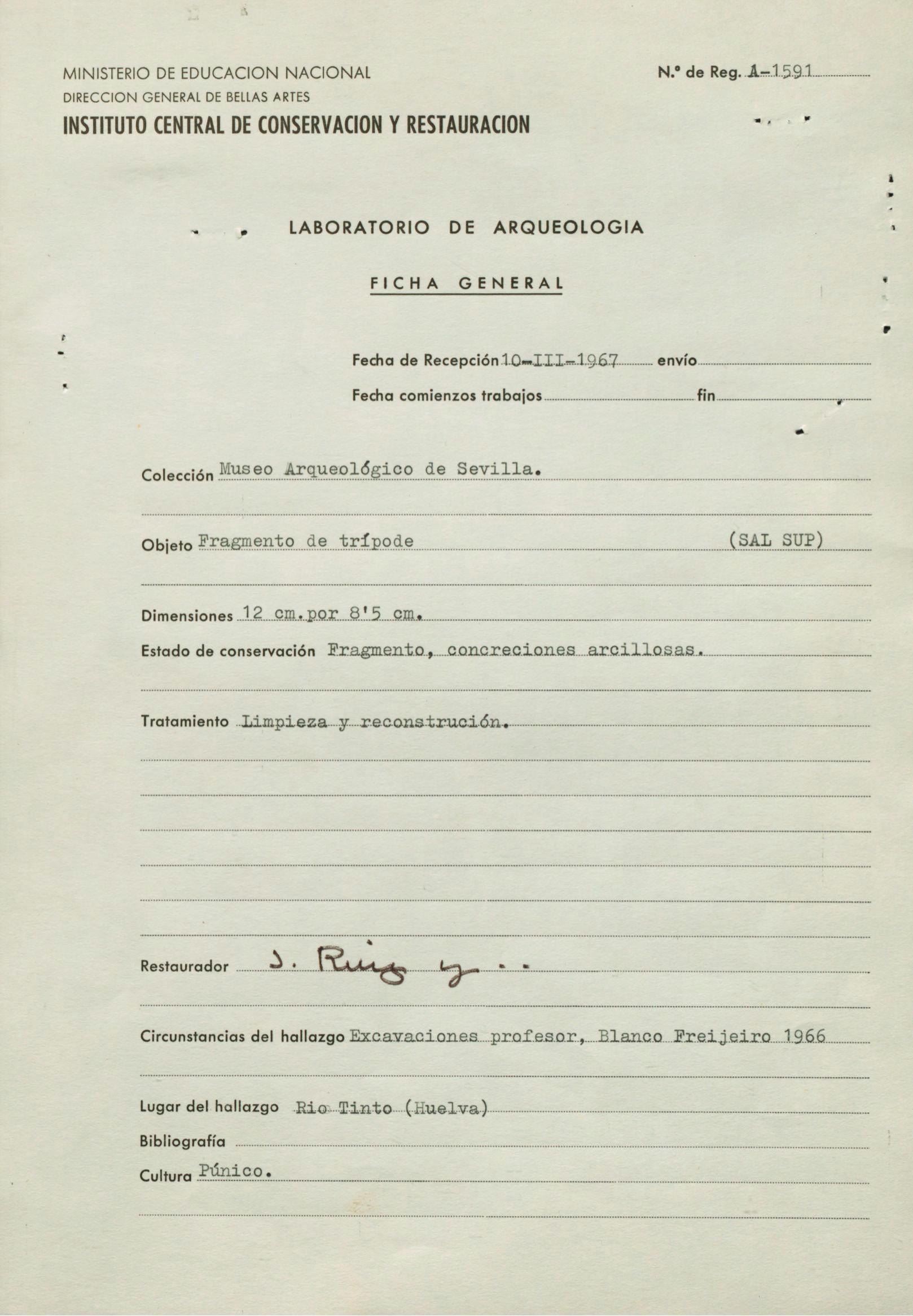 Restauración de piezas de cerámica púnica de las excavaciones de Río Tinto (Huelva), procedentes del Museo Arqueológico Provincial de Sevilla