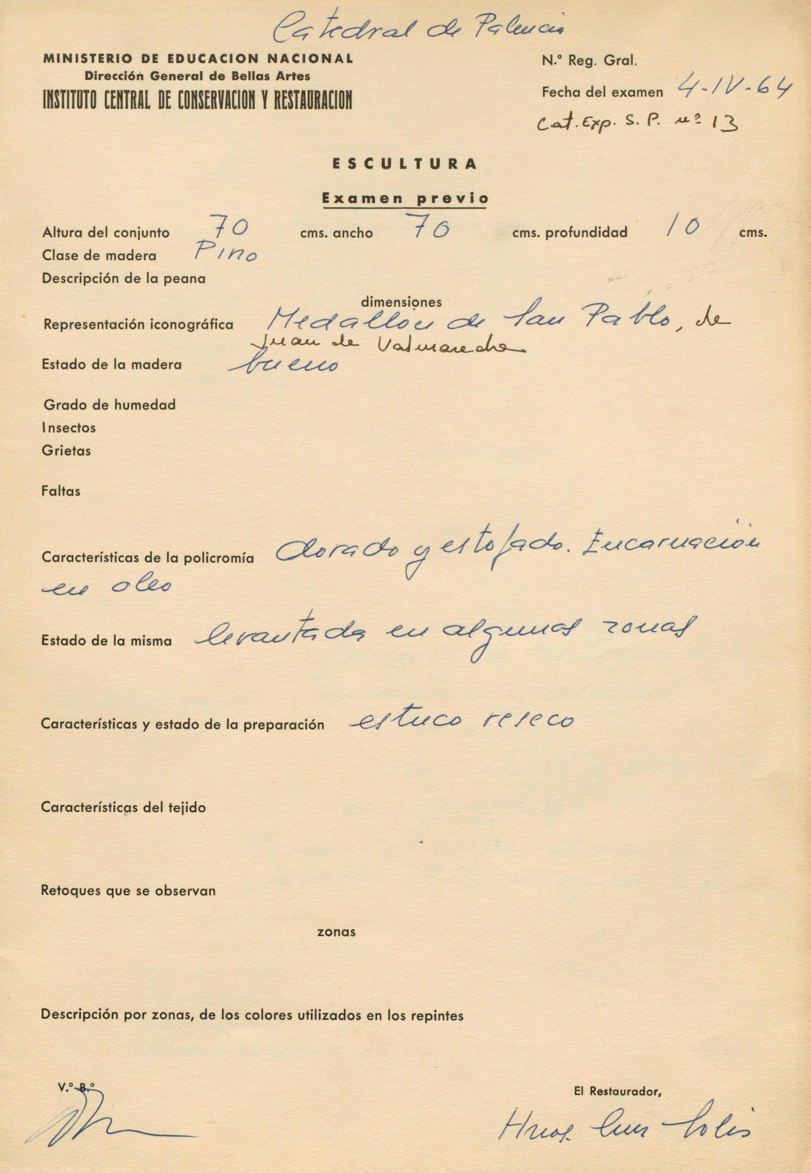 Restauración de una talla del "Medallón de San Pablo", de Juan de Valsameda, procedente de Museo la Catedral de Palencia