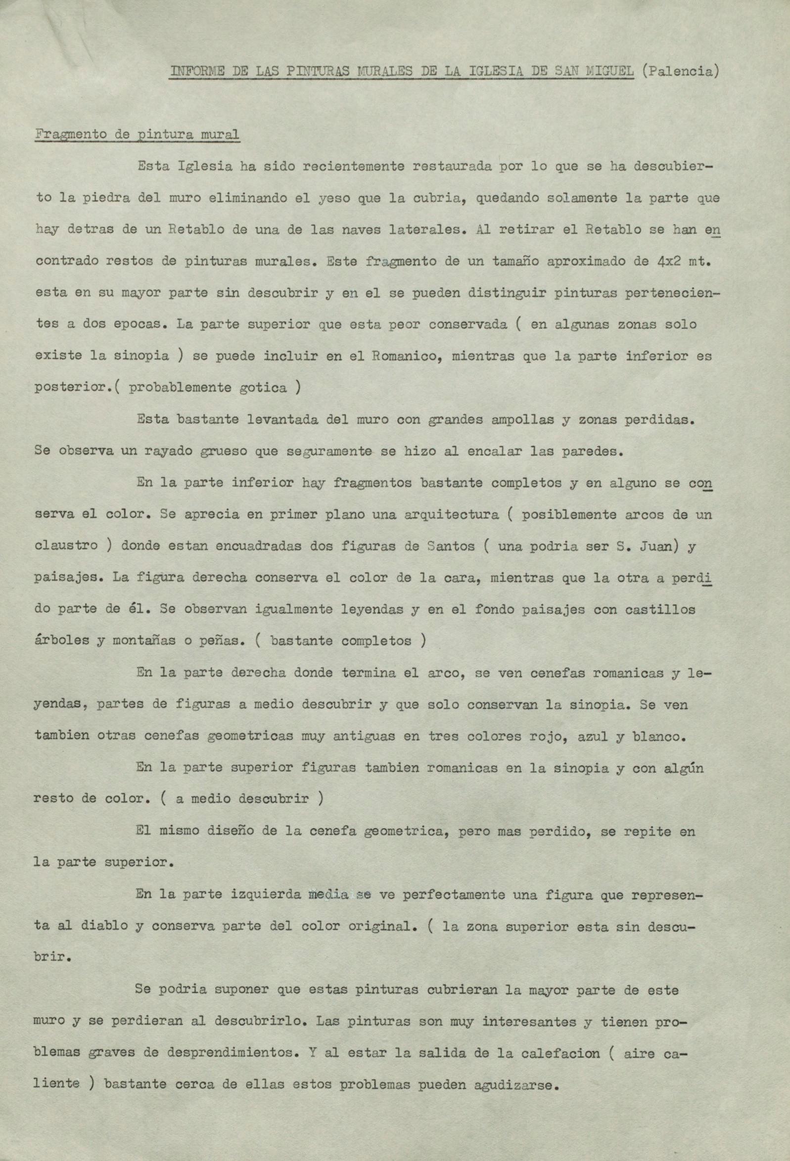 Informe de visita para la restauración de las pinturas murales de la Iglesia de San Miguel (Palencia)