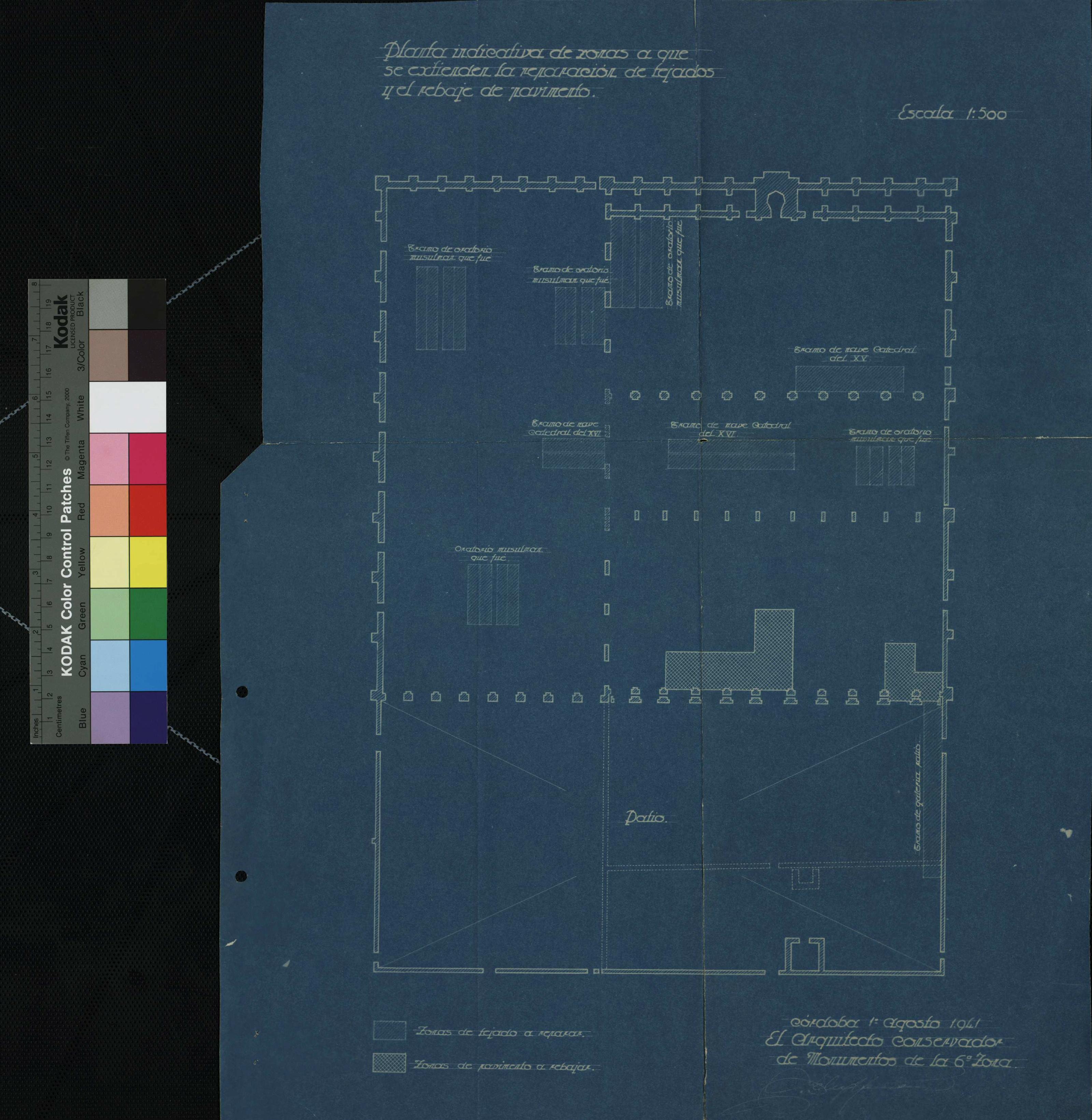 Mezquita de Cordoba: Planta indicativa de zonas a que se extenden la reparación de tejados y el rebaje de pavimentos.