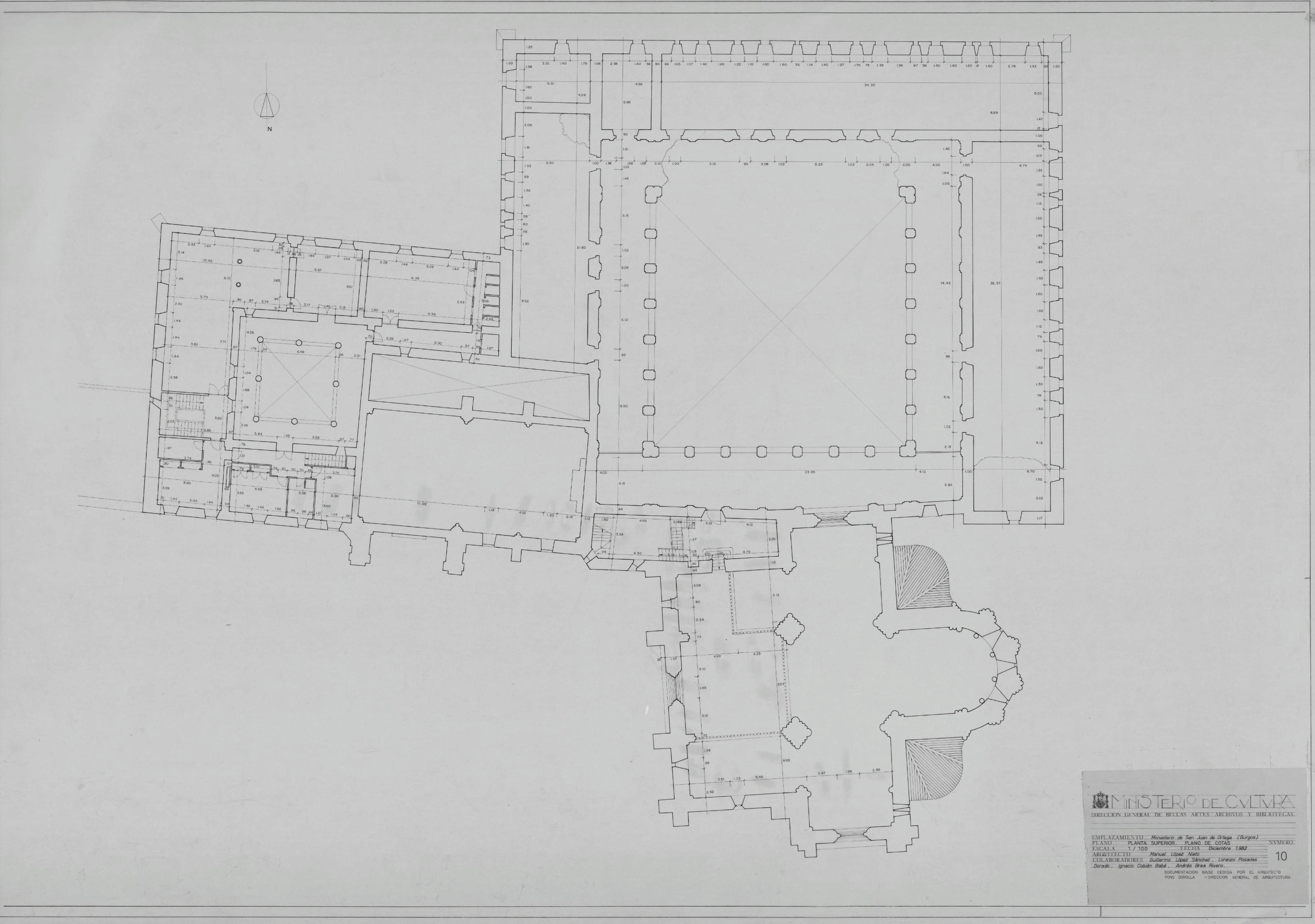 MONASTERIO DE SAN JUAN DE ORTEGA . BURGOS-: PLANTA SUPERIOR. PLANO DE COTAS Esta documentacion base esta cedida por el arquitecto Pons Sorolla.Planos realizados por personas contratadas por el INEM.
