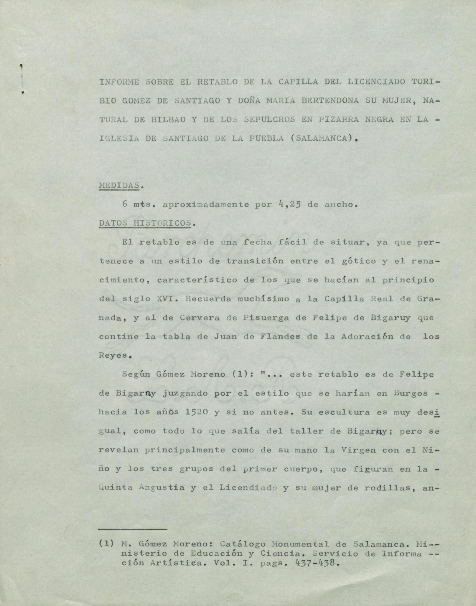 Informe de conservación del retablo de la Capilla del Licenciado Toribio Gómez de Santiago y Doña María Bertendona y de los sepulcros de pizarra negra de la Iglesia parroquial de Santiago de la Puebla (Salamanca)
