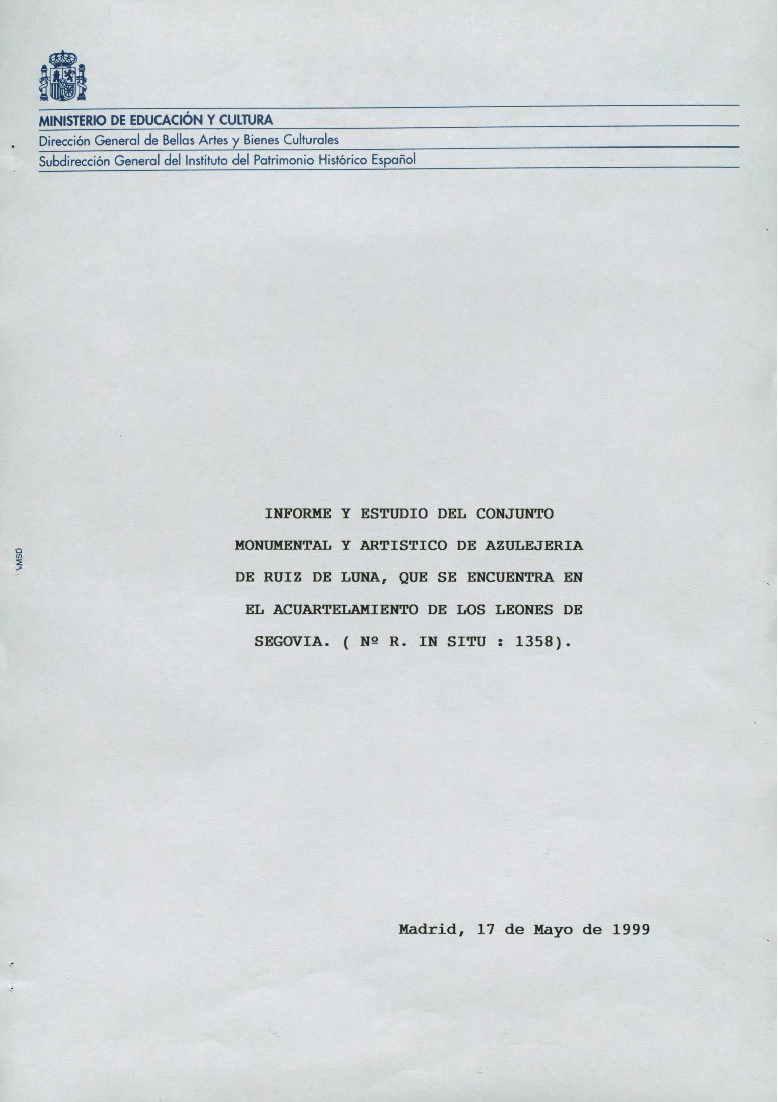 Informe de visita para la restauración de las azulejerías de Juan Ruiz de Luna del Acuartelamiento de los Leones de Segovia