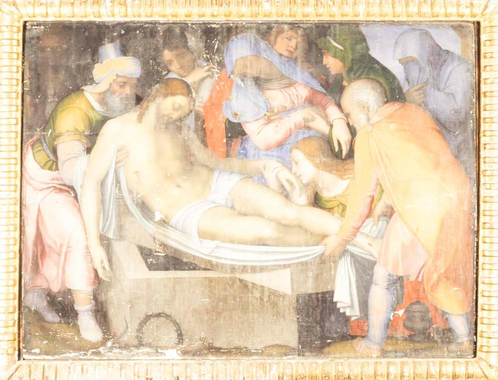 Restauración de la tabla "Entierro de Cristo" del siglo XV, procedente de la Iglesia parroquial de Abanco (Soria)
