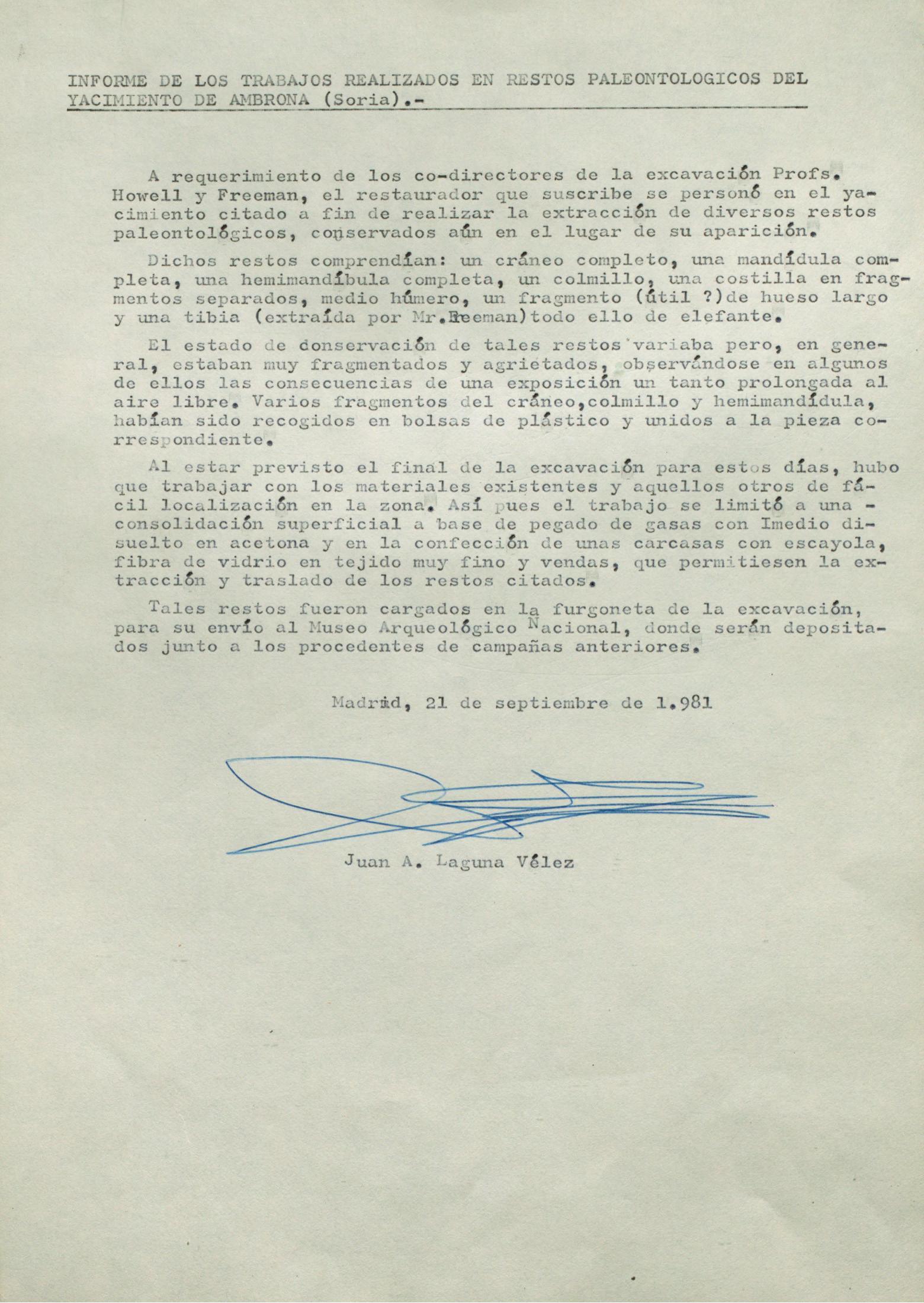Informe de visita para la restauración de restos paleontológicos del yacimiento arqueológico de Ambrona (Soria)