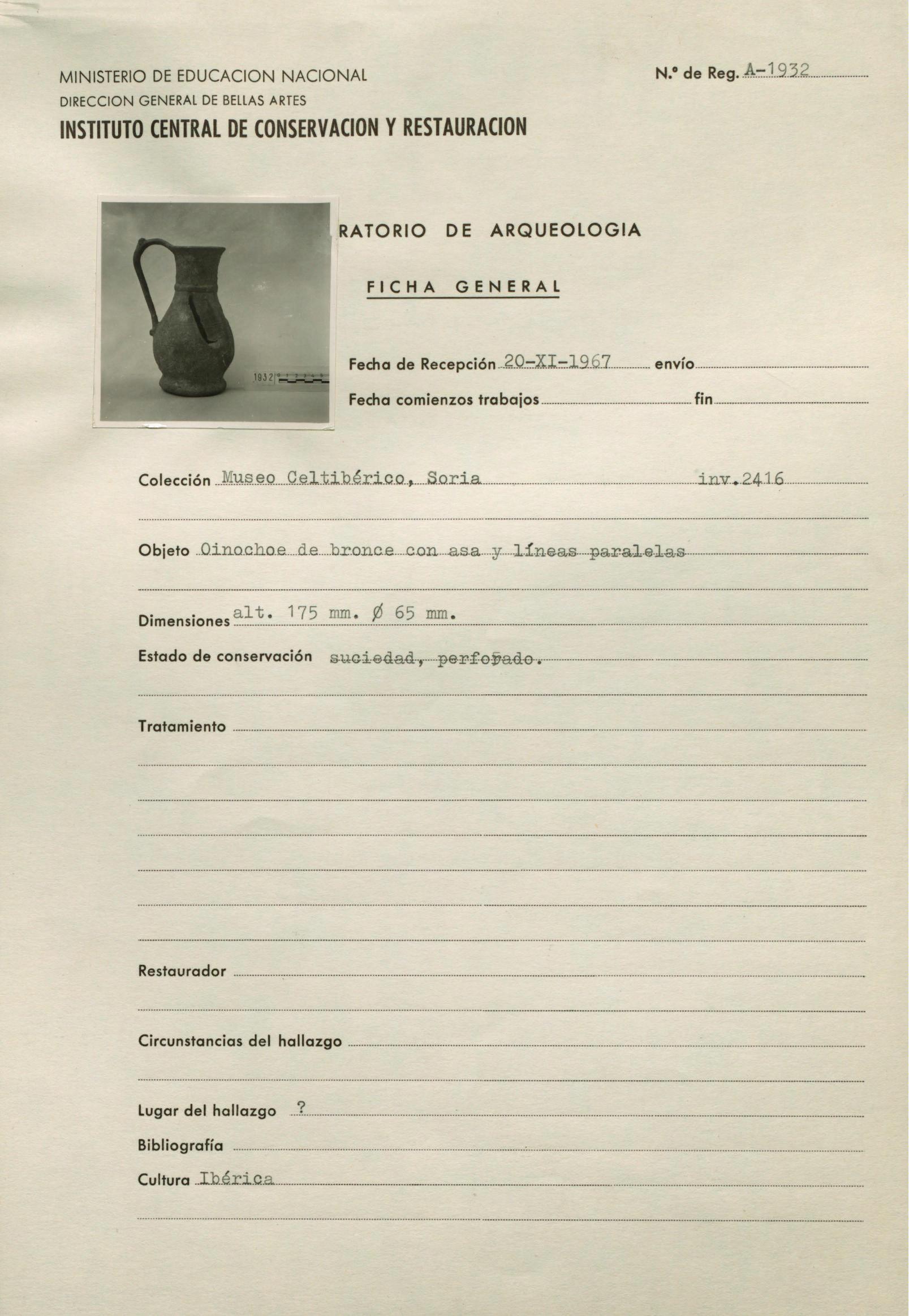 Restauración de un "Oinochoe" ibérico de bronce procedente del Museo Celtibérico de Soria