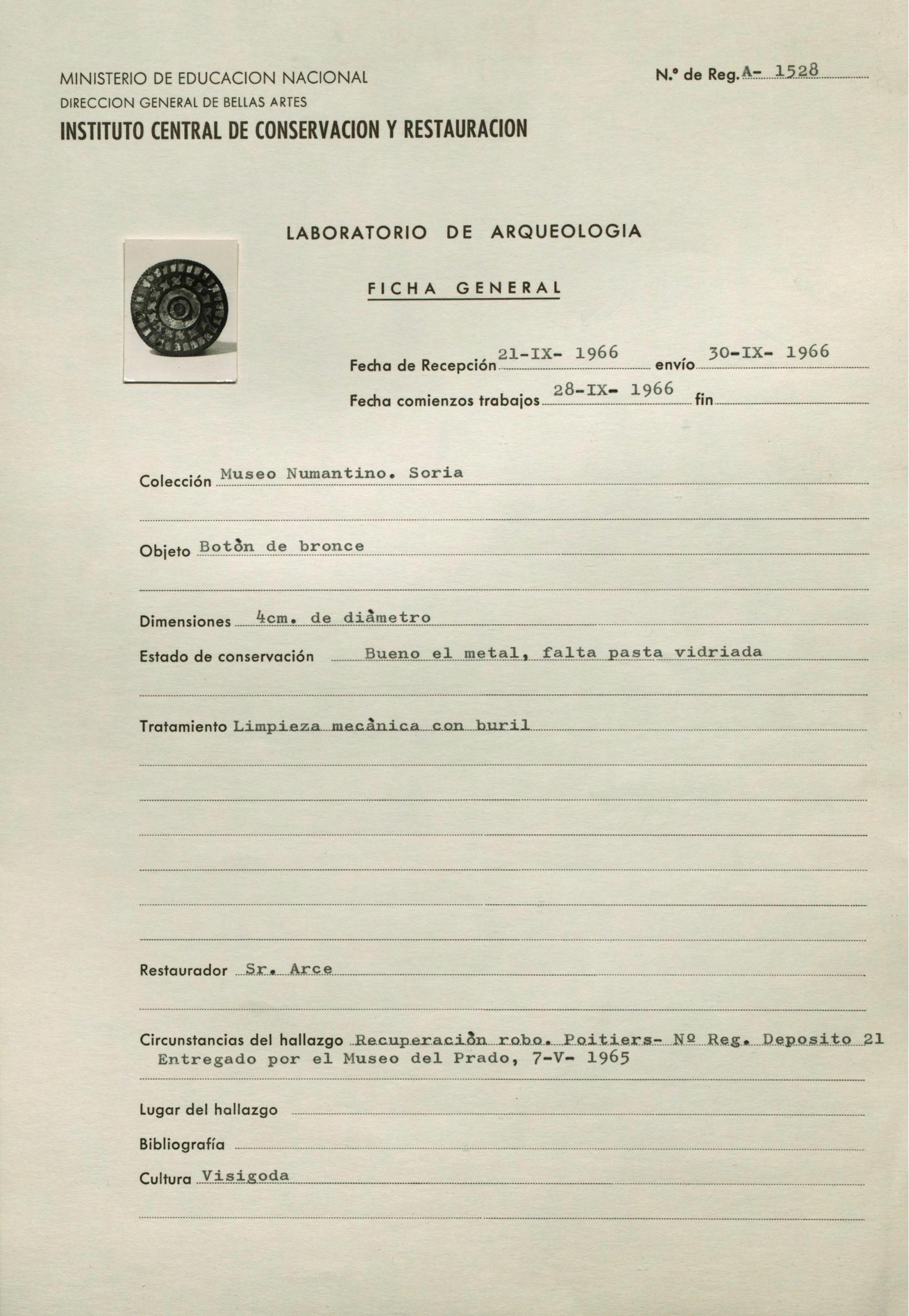 Restauración de un botón de bronce procedente del Museo Numantino (Soria)