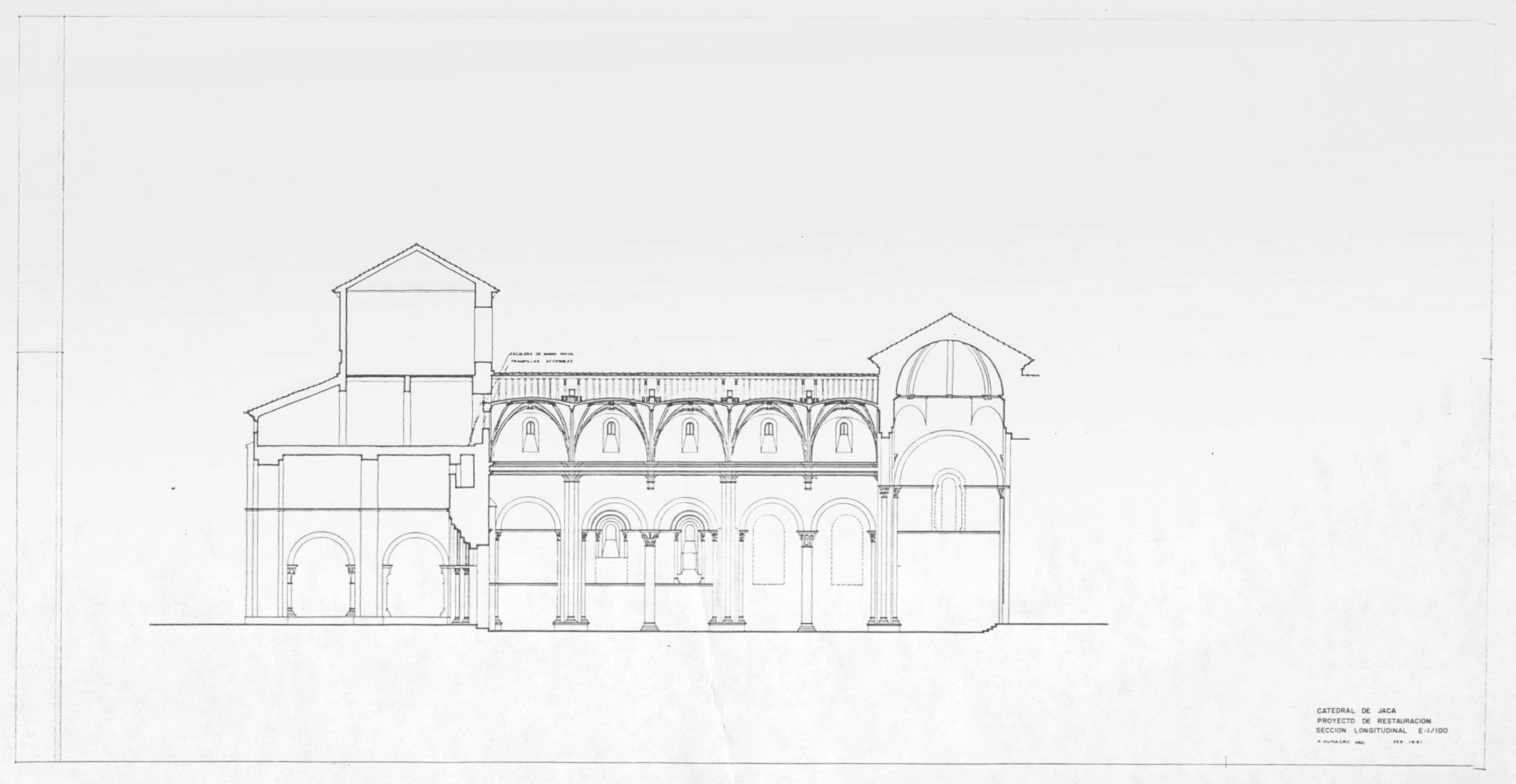 Catedral de Jaca: Sección longitudinal. Proyecto de restauración.