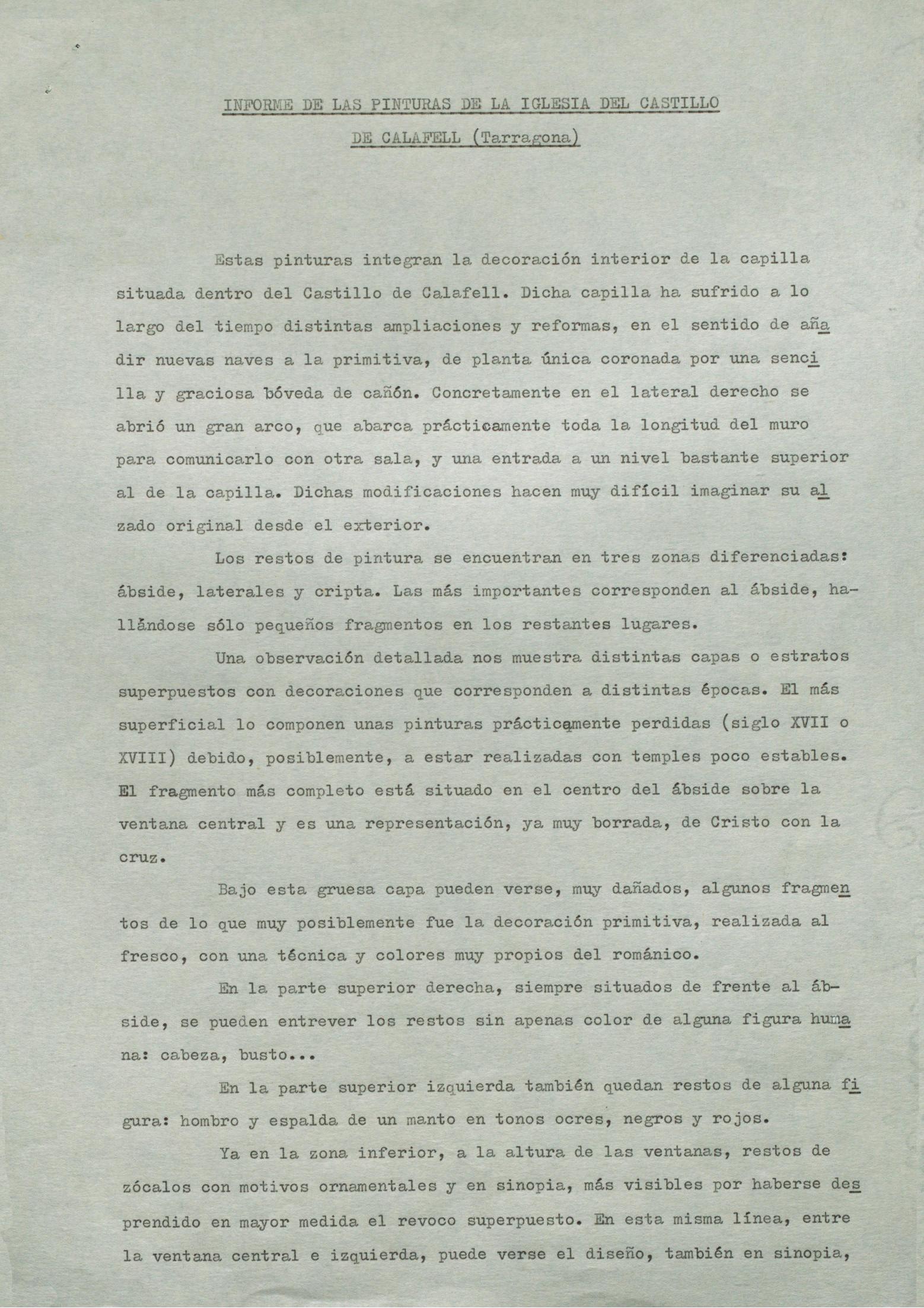 Informe de conservación de las pinturas medievales del castillo Iglesia de Santa Cruz de Calafell (Tarragona)