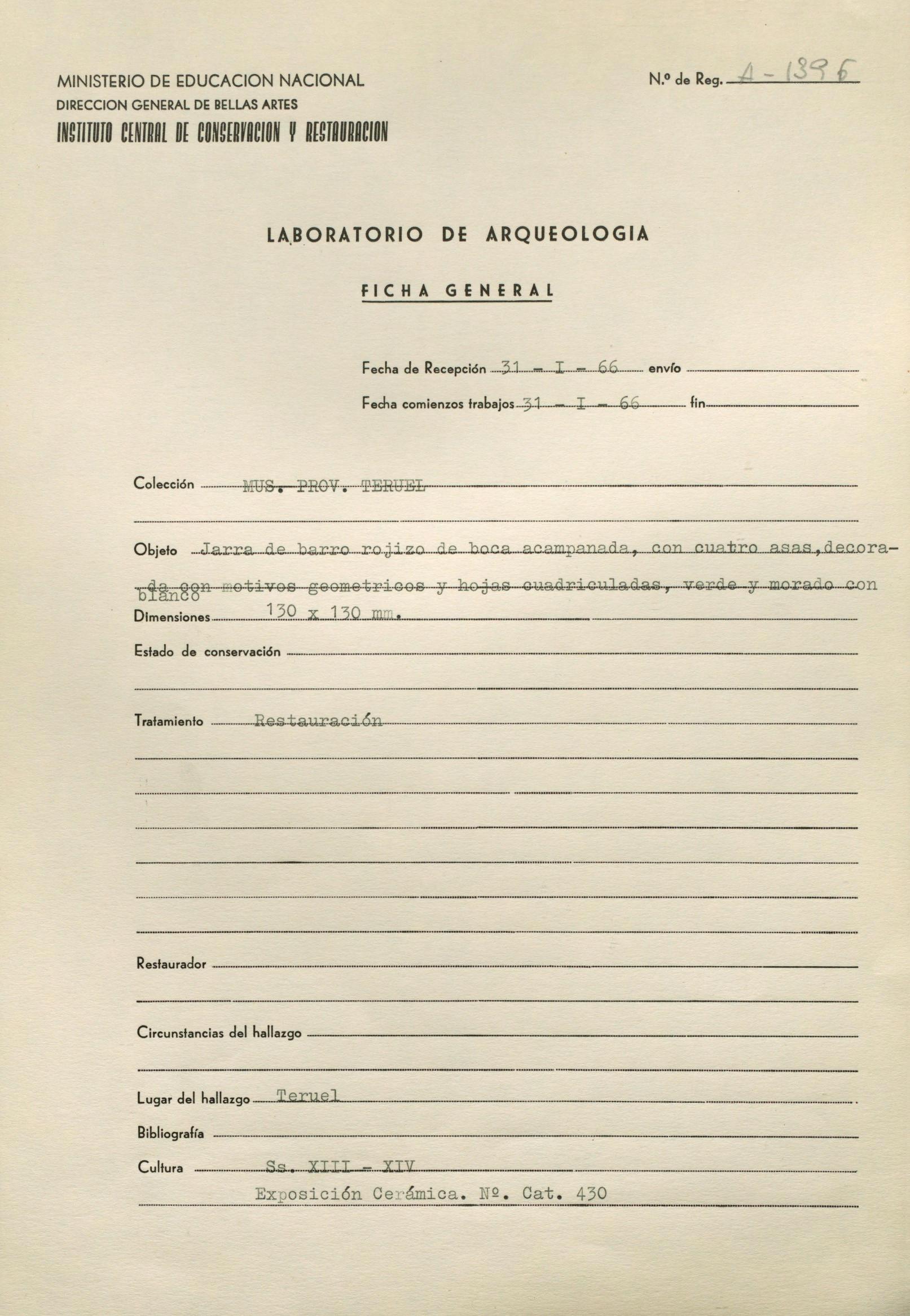 Restauración de piezas de cerámica de los siglos XIII y XIV, procedentes del Museo Arqueológico Provincial de Teruel