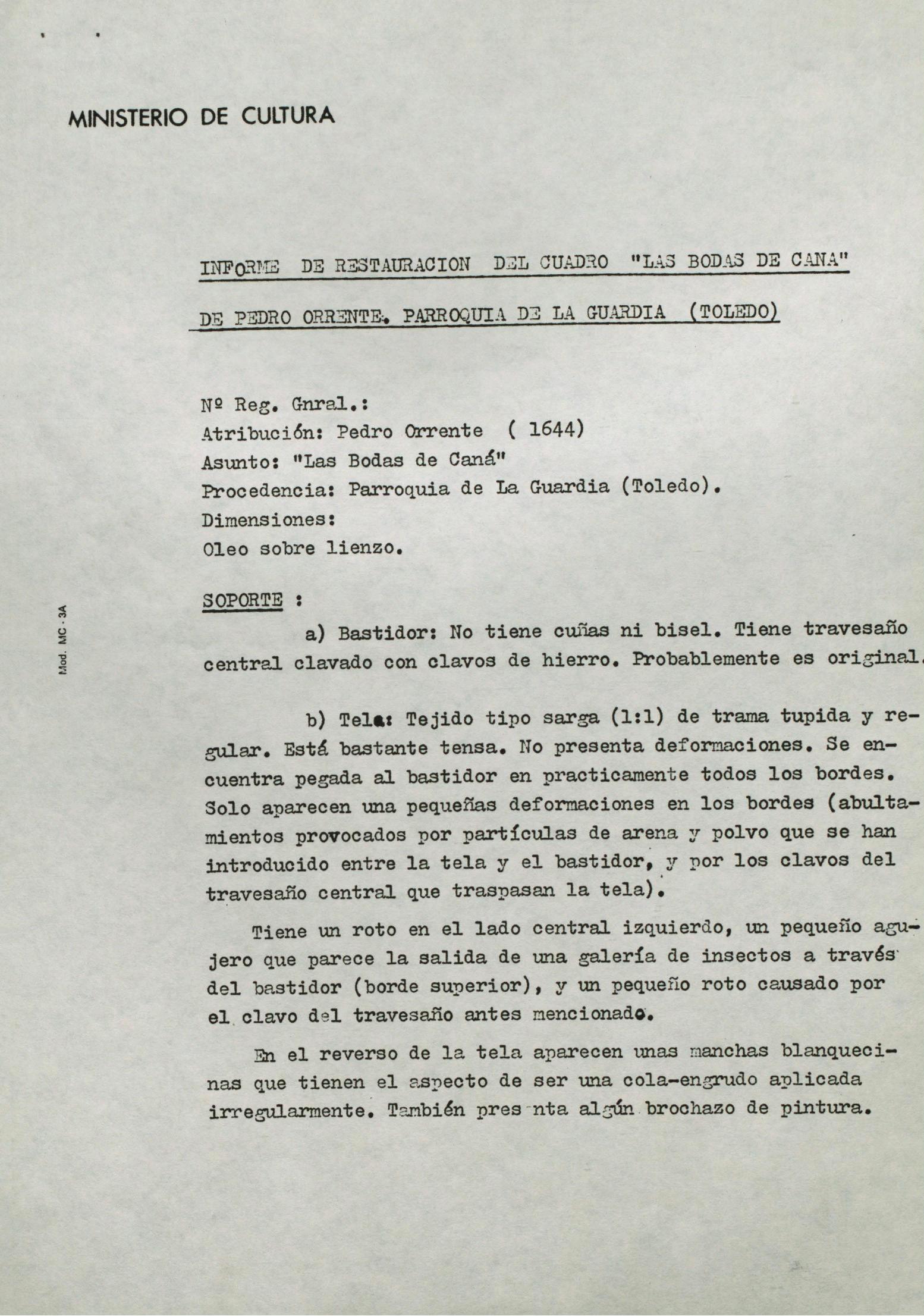 Restauración del lienzo "Las bodas de Caná", de Pedro de Orrente, procedente de la Iglesia parroquial de La Guardia (Toledo)