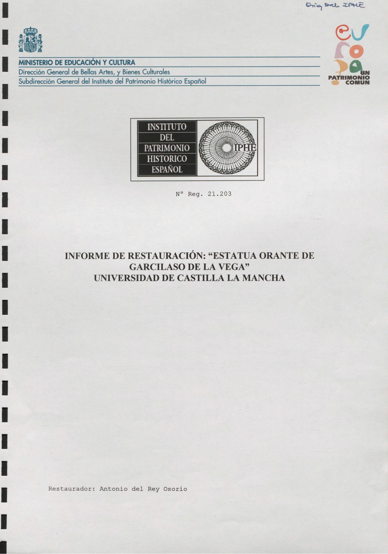 Restauración de la "Estatua orante de Garcilaso de la Vega", procedente del Convento de San Pedro Mártir (Toledo)