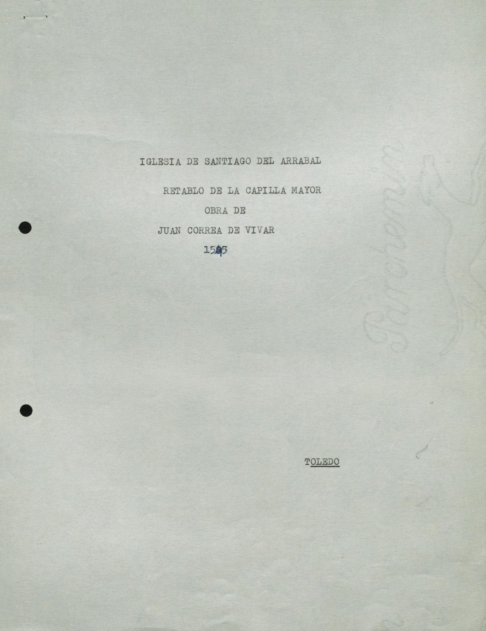 Informe de conservación del retablo del altar mayor, de Juan Correa Vivar, de la Iglesia de Santiago del Arrabal de Toledo