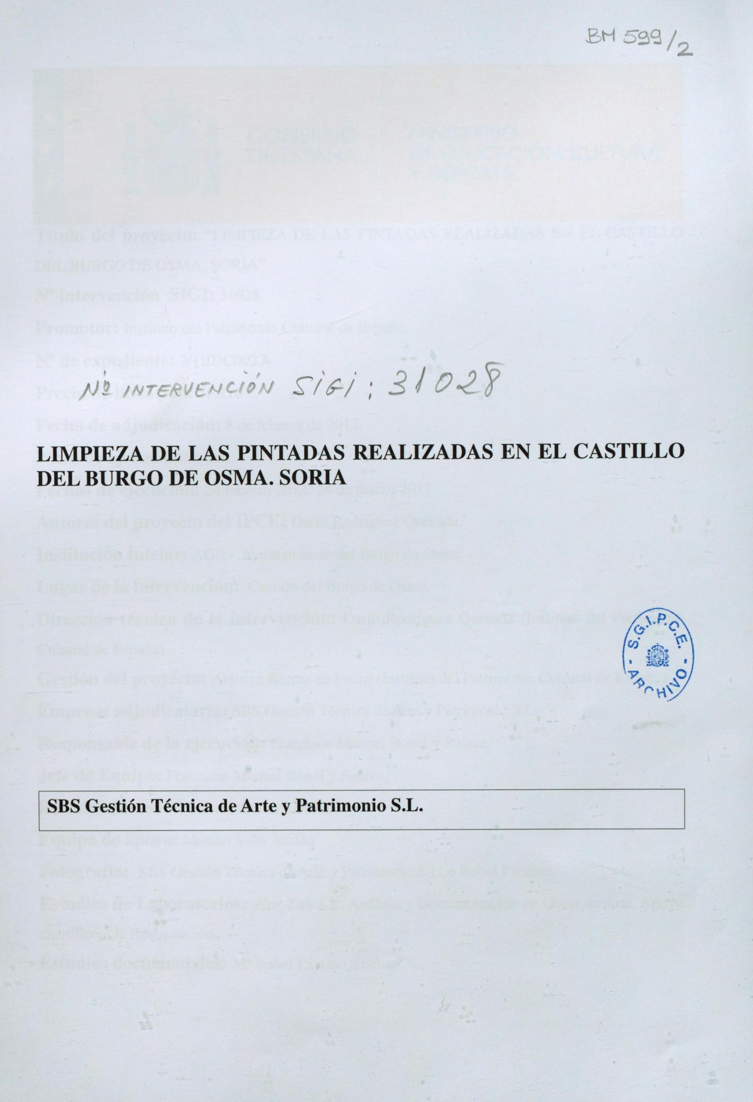 Memoria sobre la limpieza de pintadas realizadas en el Castillo del Burgo de Osma (Soria)