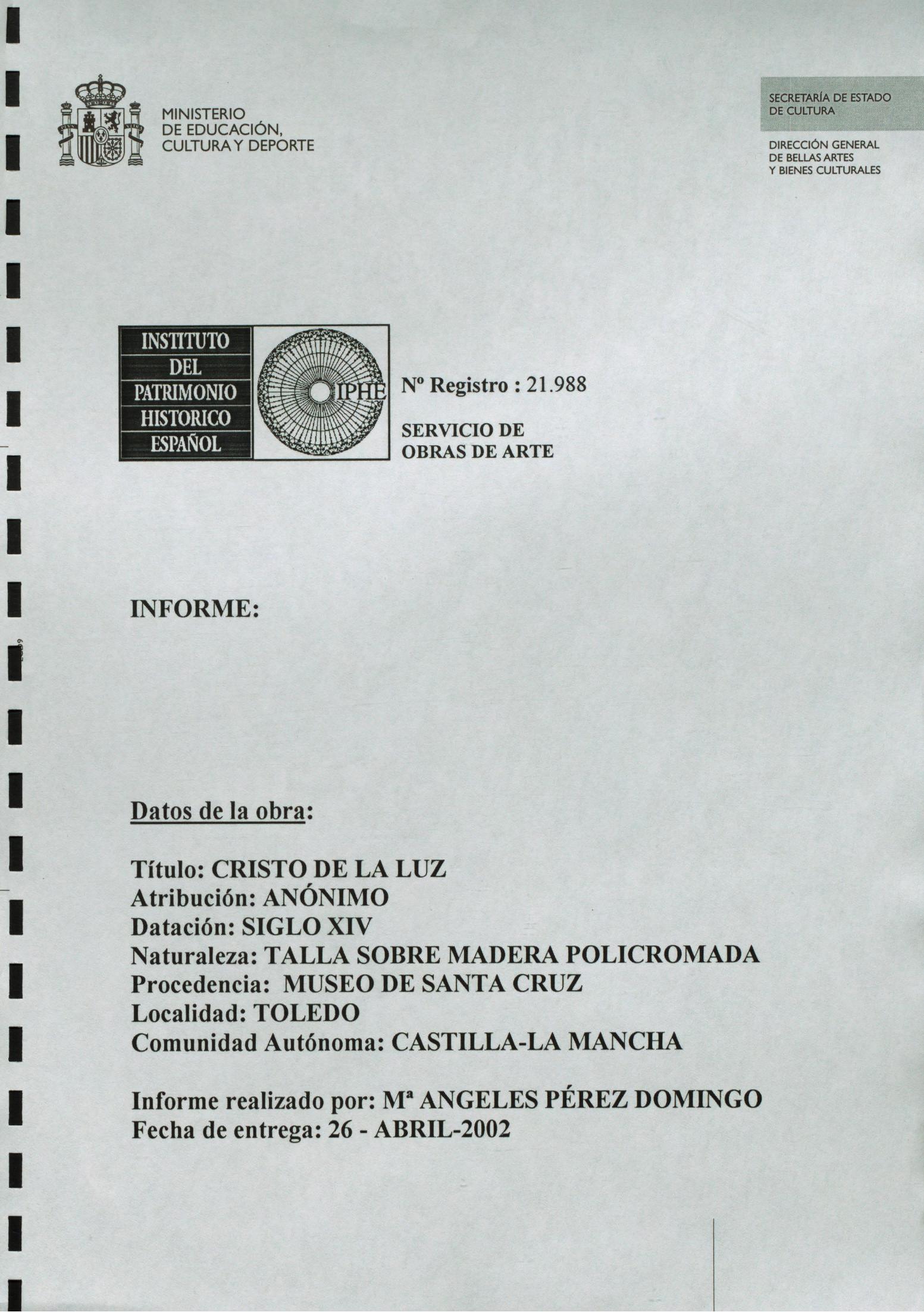 Restauración de una talla de madera policromada del "Cristo de la Luz", procedente del Museo de Santa Cruz de Toledo