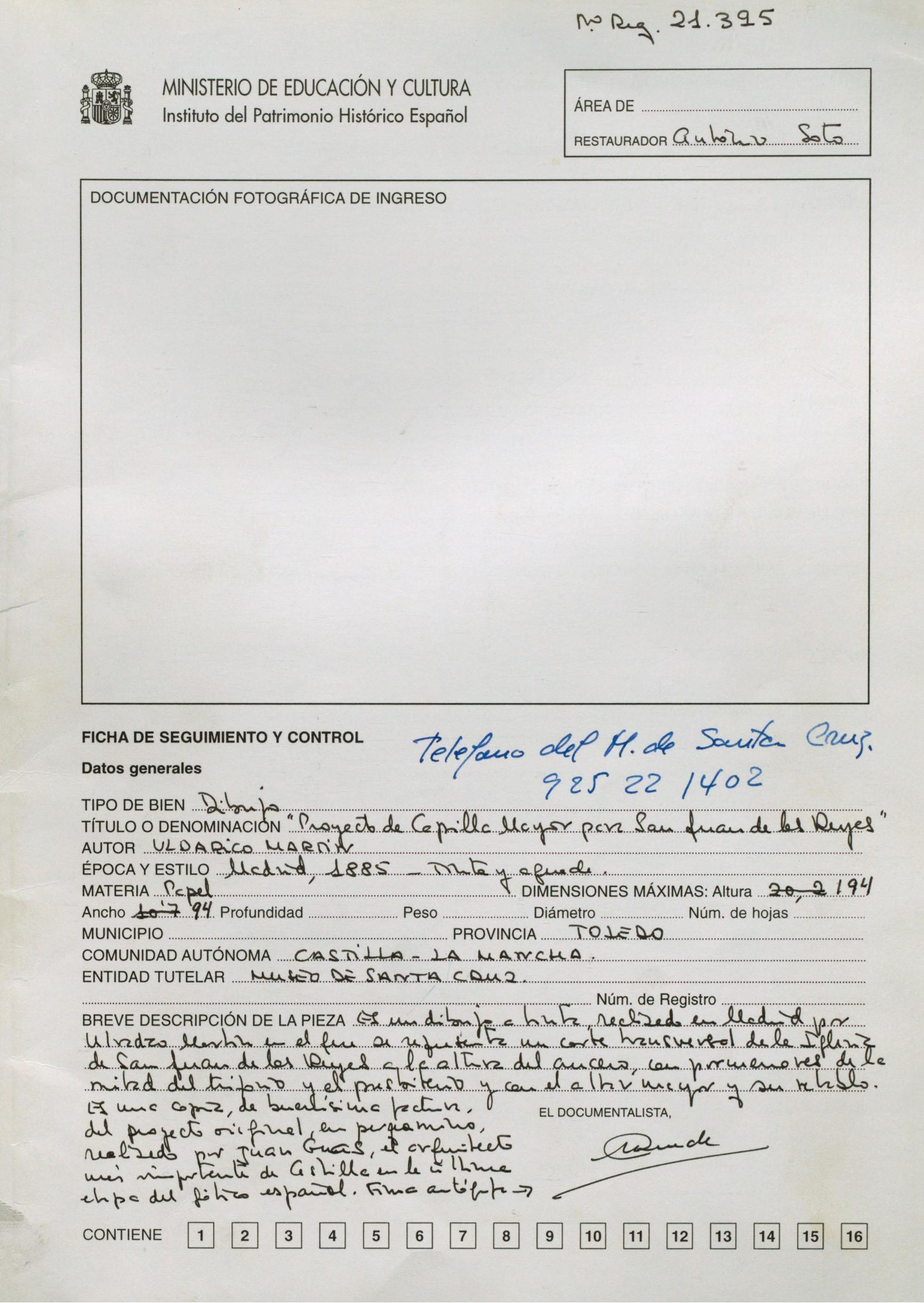 Restauración del "Proyecto de capilla mayor para San Juan de los Reyes", de Uldarrico Martín, procedente del Museo de Santa Cruz de Toledo
