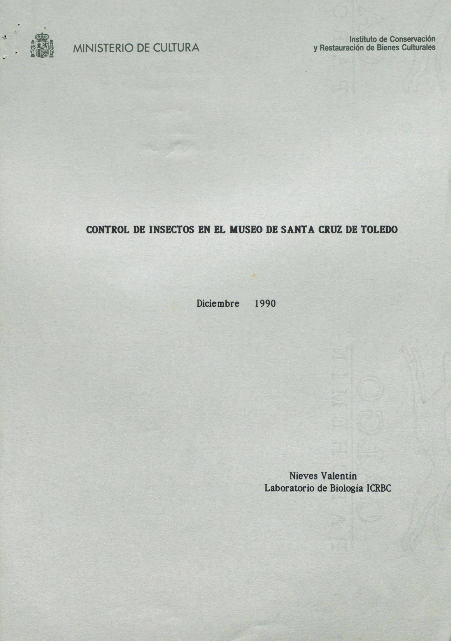 Informe sobre el control de insectos en el Museo de Santa Cruz de Toledo