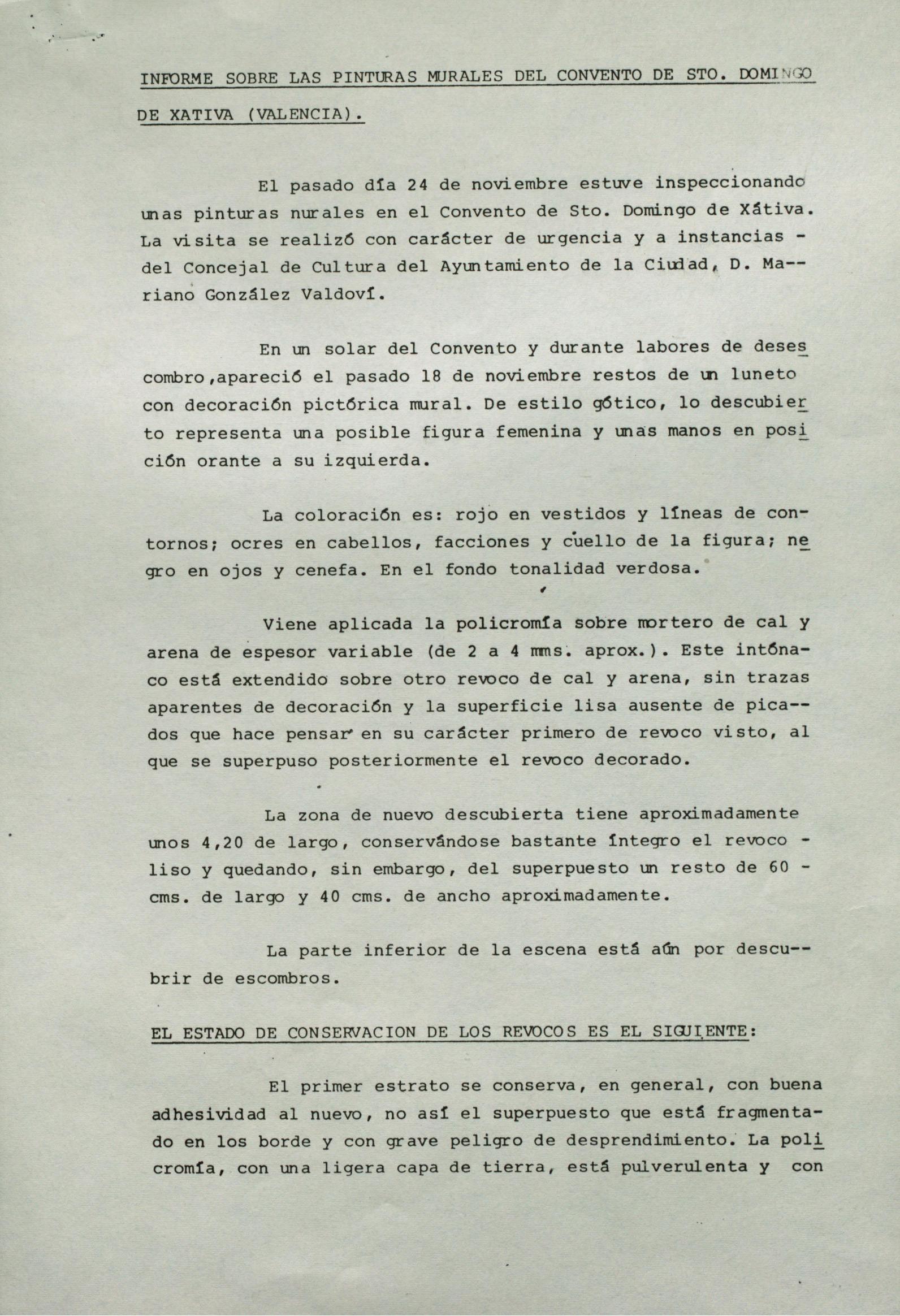 Informe de conservación de pinturas murales góticas procedentes del Convento de Santo Domingo de Játiva (Valencia)