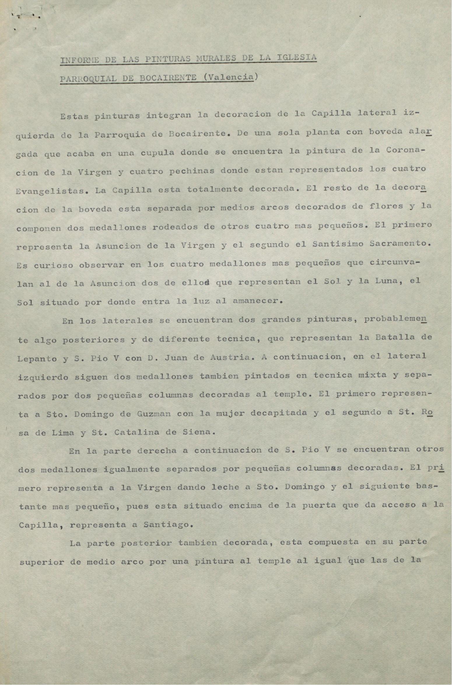 Informe de conservación de las pinturas murales del siglo XVIII, de la Iglesia parroquial de Nuestra Señora de la Asunción de Bocairente (Valencia)