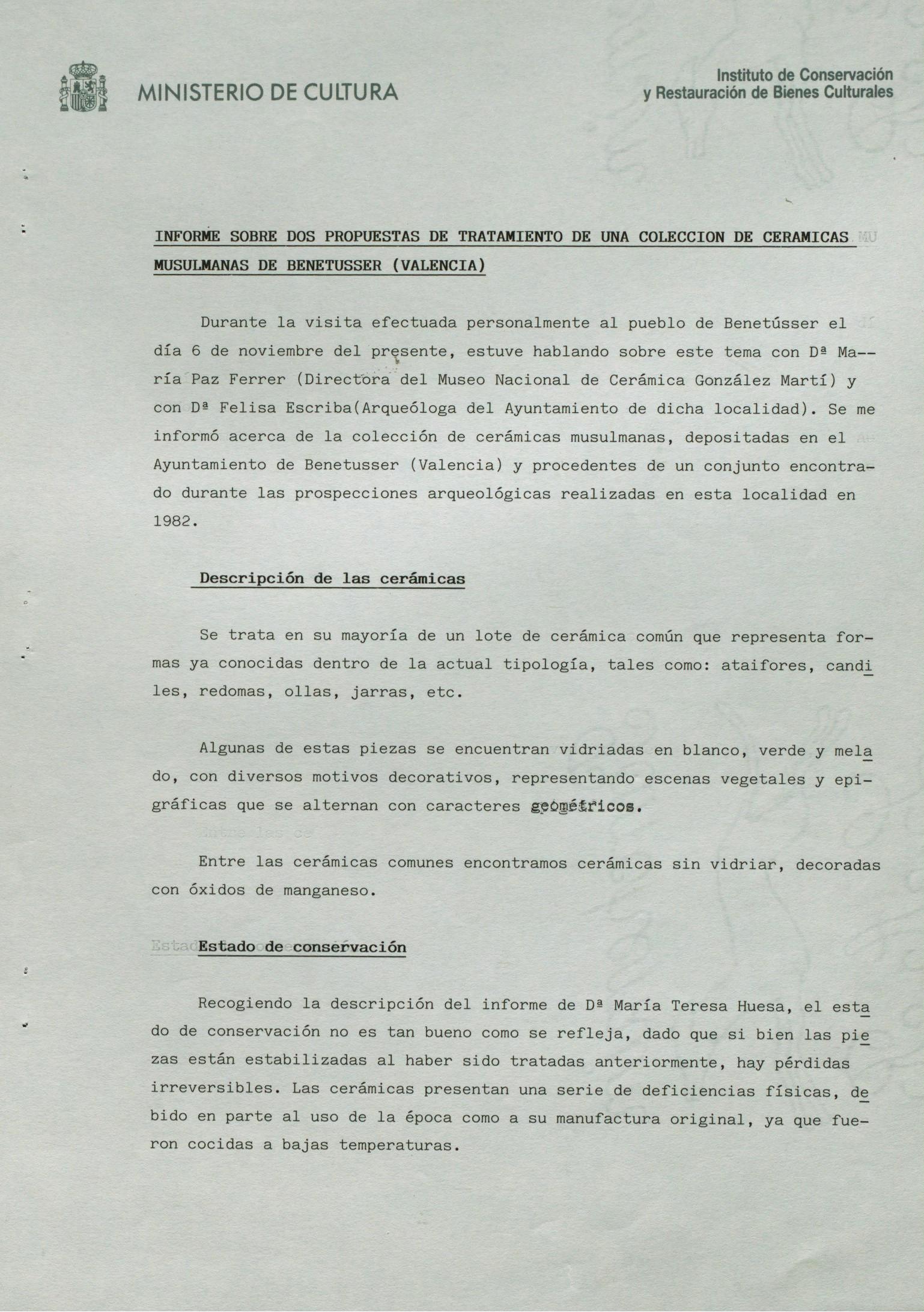 Restauración in situ de una colección de cerámicas del Ayuntamiento de Benetússer (Valencia)