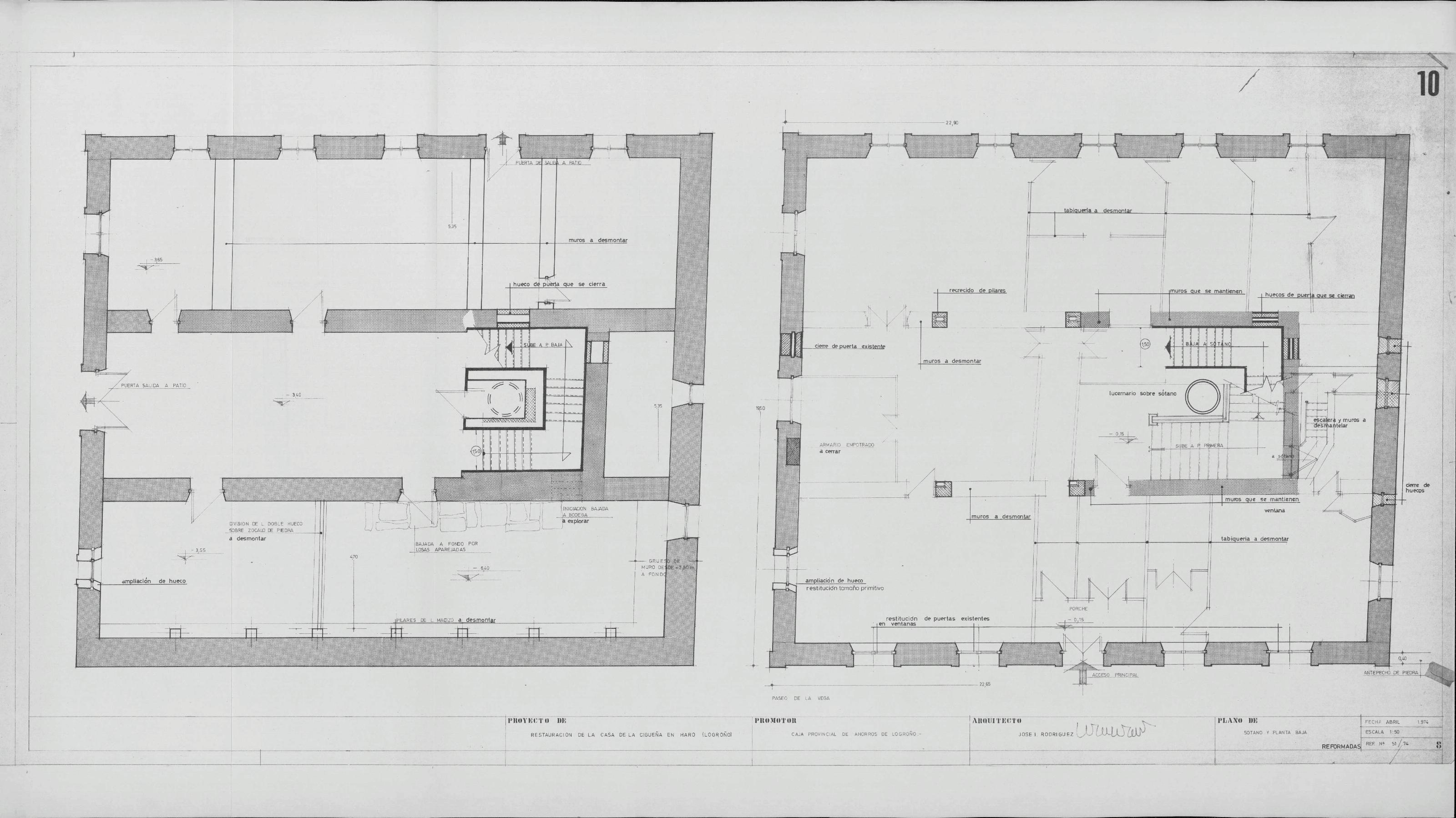 CASA DE LA CIGÜEÑA. (para sucursal de la Caja de Ahorros, planta baja): PLANO SOTANO Y PLANTA BAJA