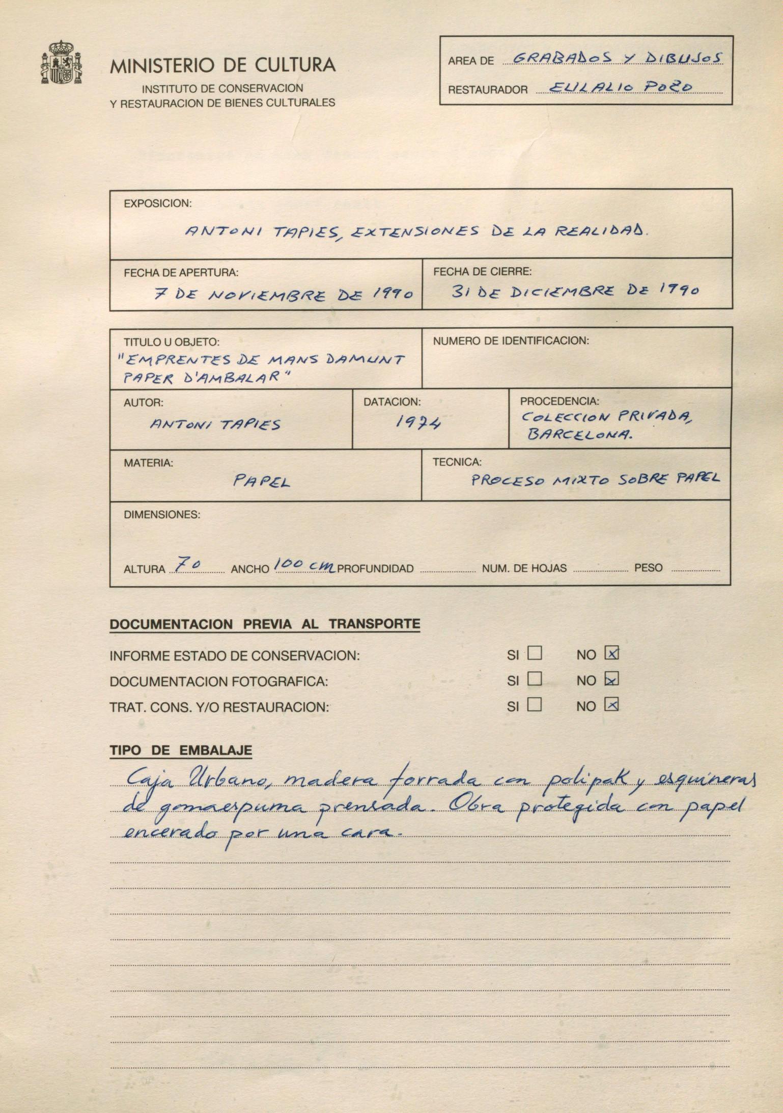 Exposición "Antoni Tàpies. Extensiones de la realidad". Museo Nacional Centro de Arte Reina Sofía (Madrid)