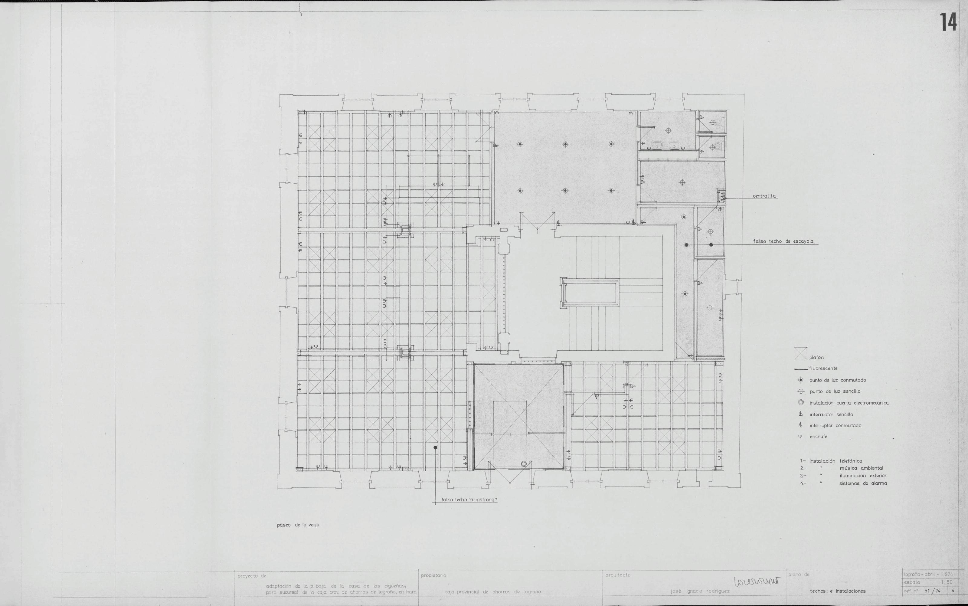 CASA DE LA CIGÜEÑA. (para sucursal de la Caja Provincial de Ahorros, planta baja): PLANO DE TECHOS E INSTALACIONES