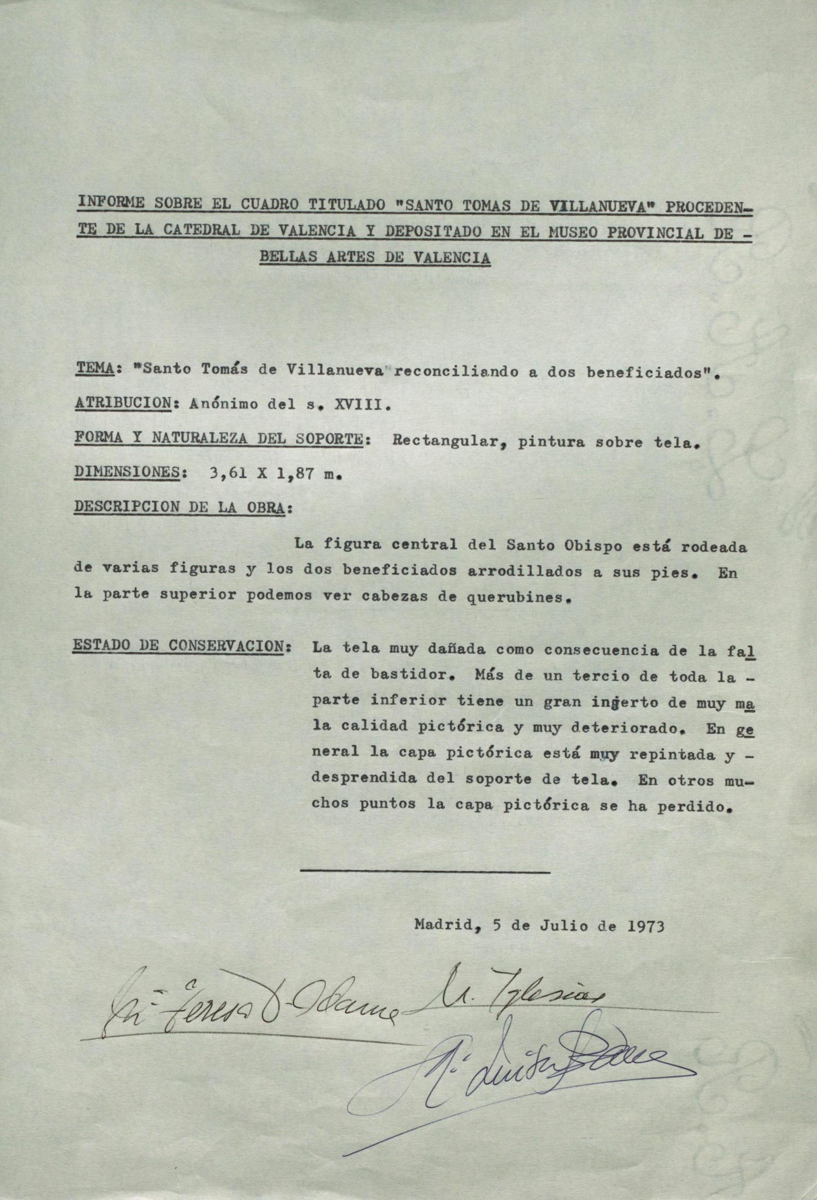 Informes sobre la conservación de dos pinturas de la Catedral de Valencia, depositadas en el Museo Provincial de Bellas Artes de Valencia