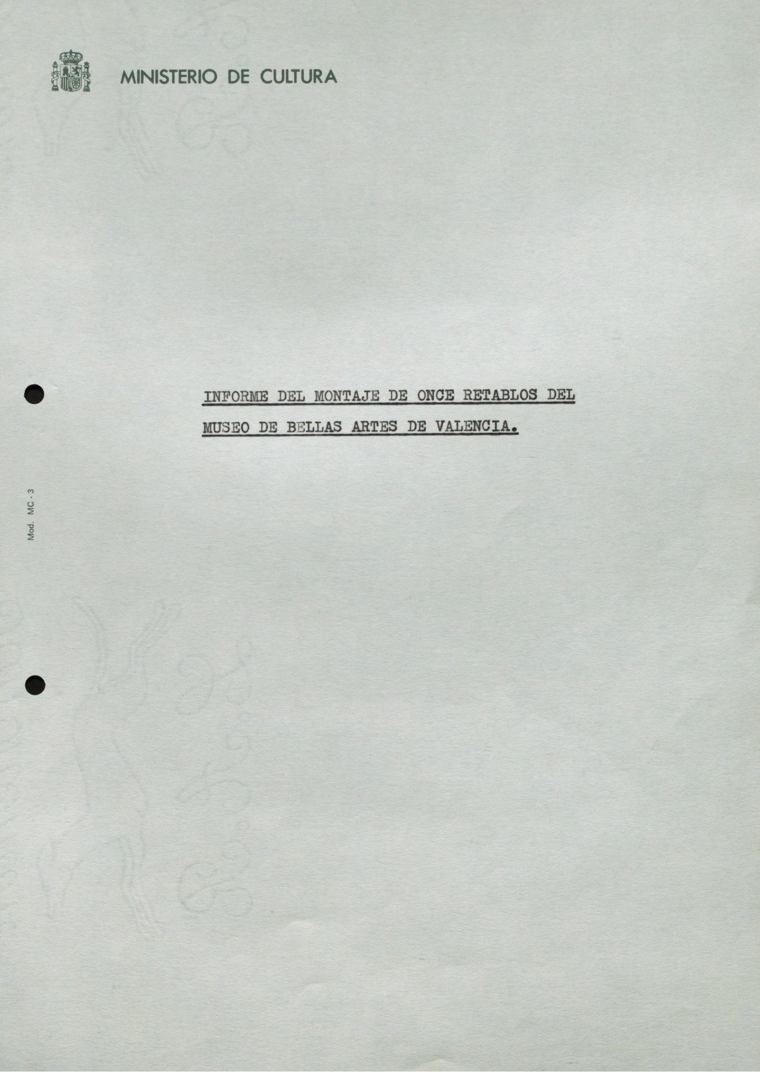 Informe sobre el montaje de once retablos del Museo Provincial de Bellas Artes de Valencia
