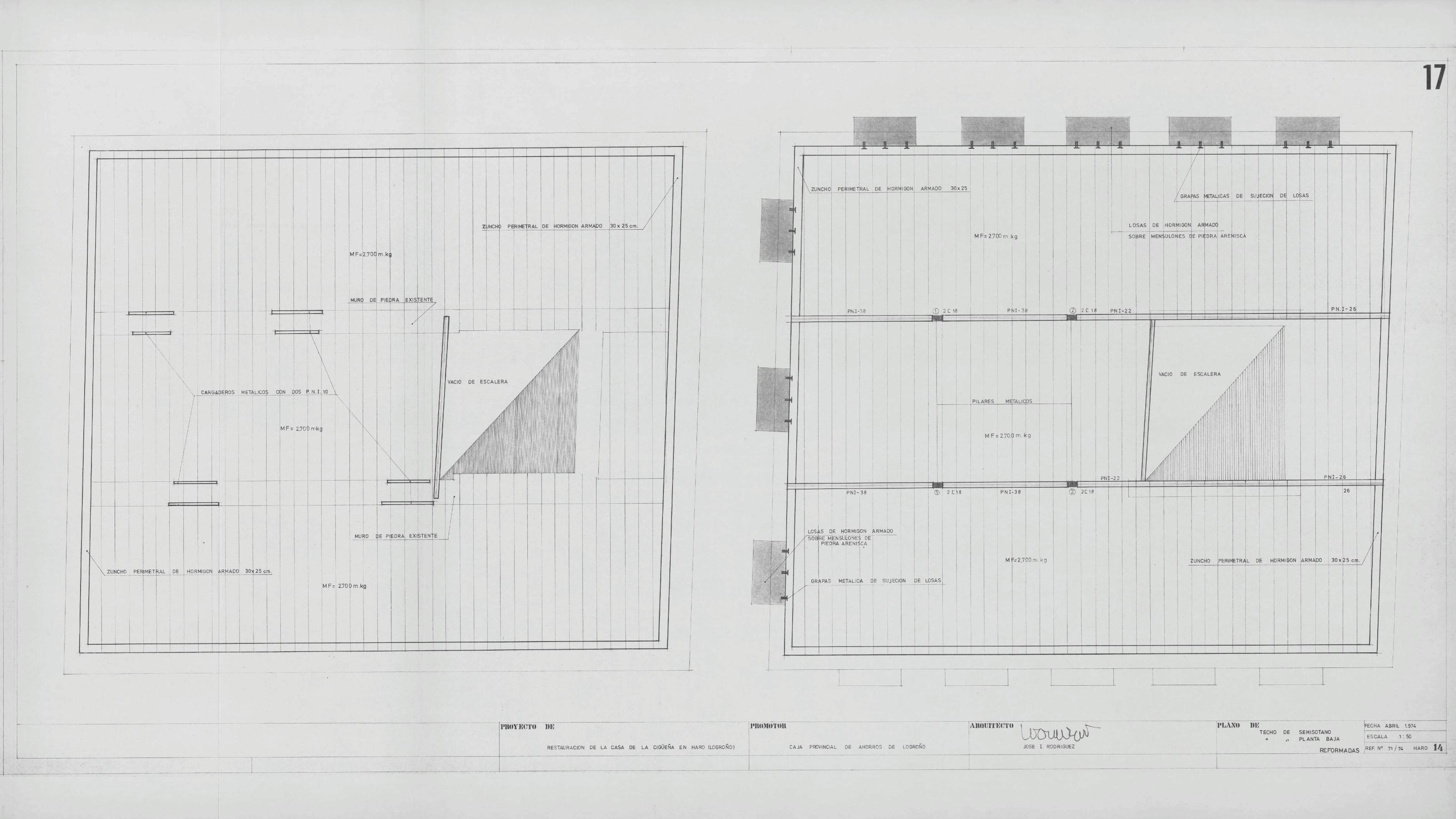 CASA DE LA CIGÜEÑA. (RESTAURACION): PLANO TECHO DE SEMISOTANO Y TECHO PLANTA BAJA