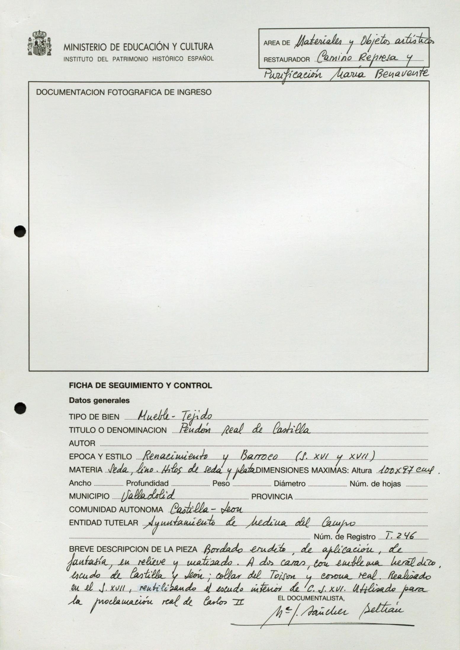 Restauración de un pendón real de Castilla, del siglo XVI, del Ayuntamiento de Medina del Campo (Valladolid)