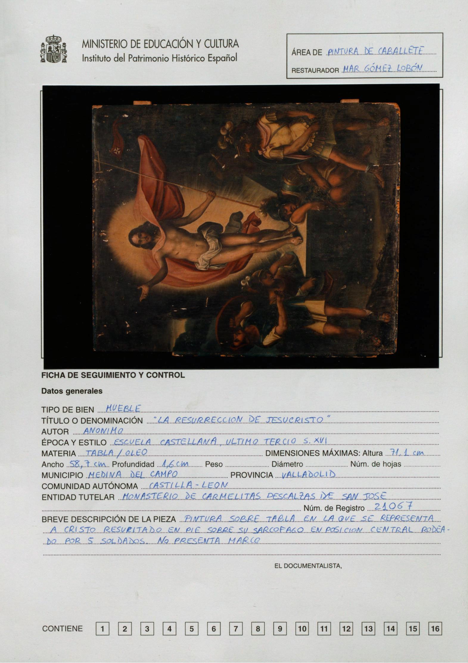 Restauración de la tabla "Ascensión de Cristo", procedente del Convento de las Carmelitas Descalzas de Medina del Campo (Valladolid)