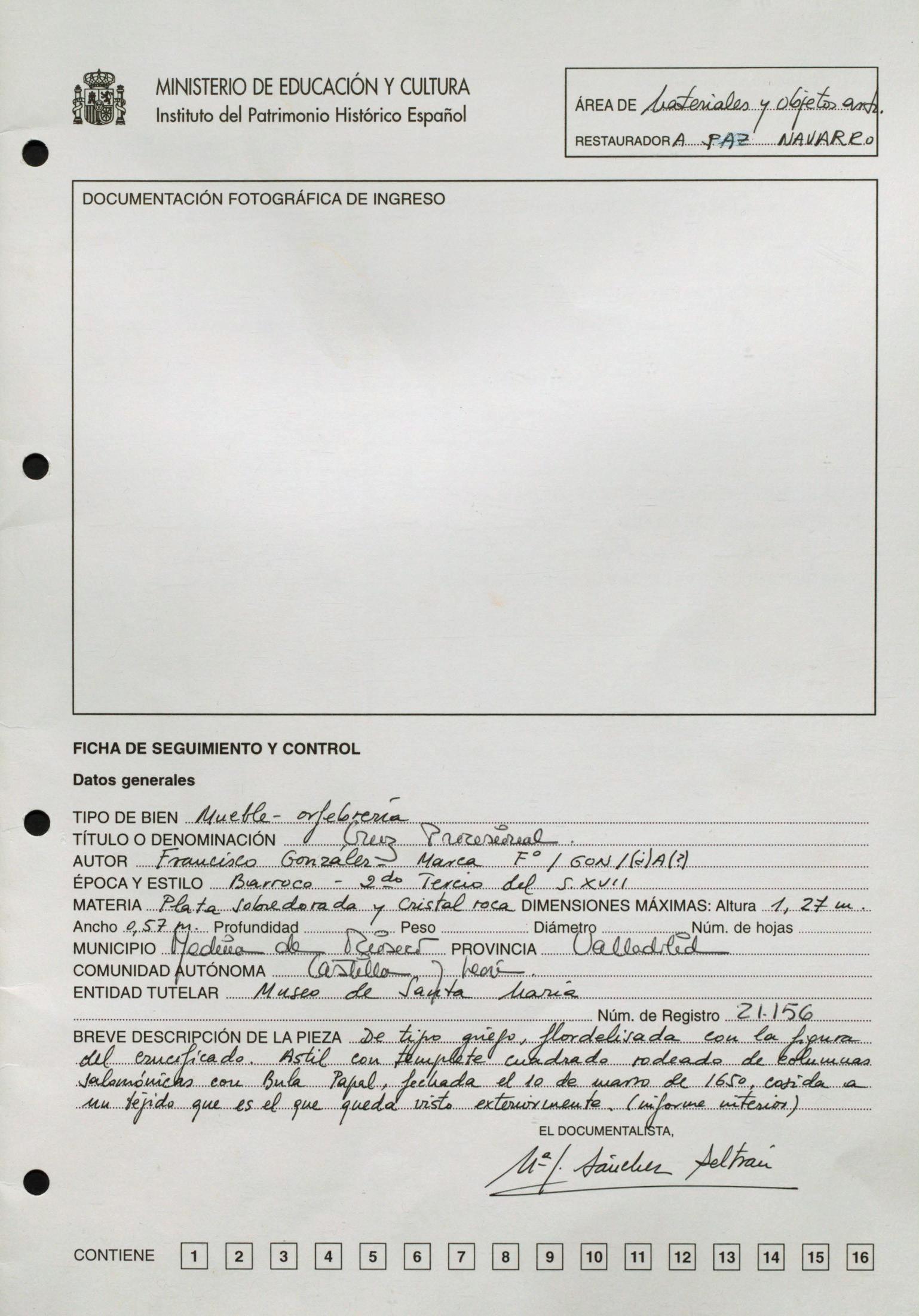 Restauración de una cruz procesional del siglo XVII, de cristal con aplicaciones de plata, de Francisco de González, procedente del Museo de Santa María de Mediavilla de Medina de Rioseco (Valladolid)