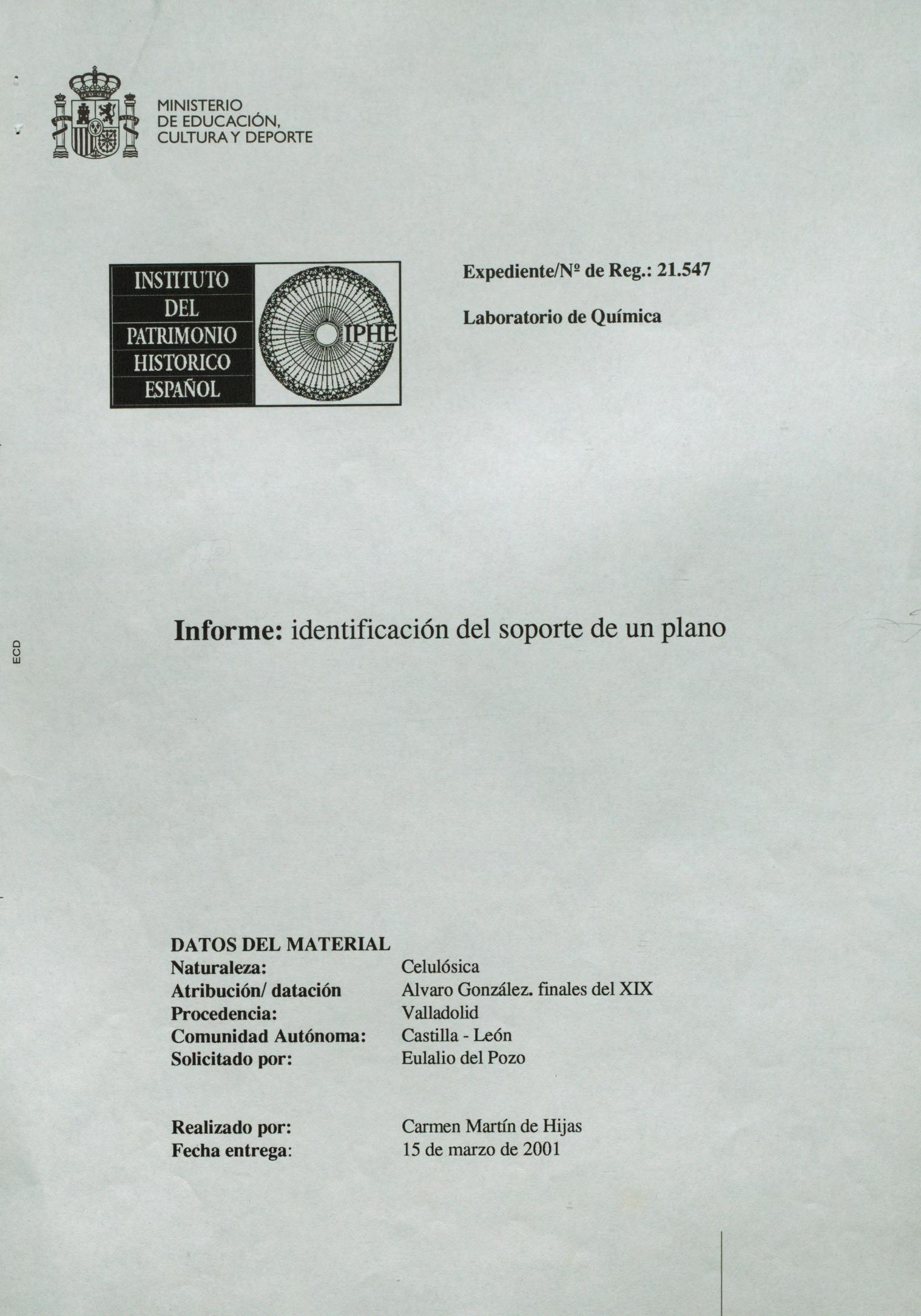 Informe de laboratorio para la identificación del soporte de un plano procedente del Archivo Histórico Provincial de Valladolid
