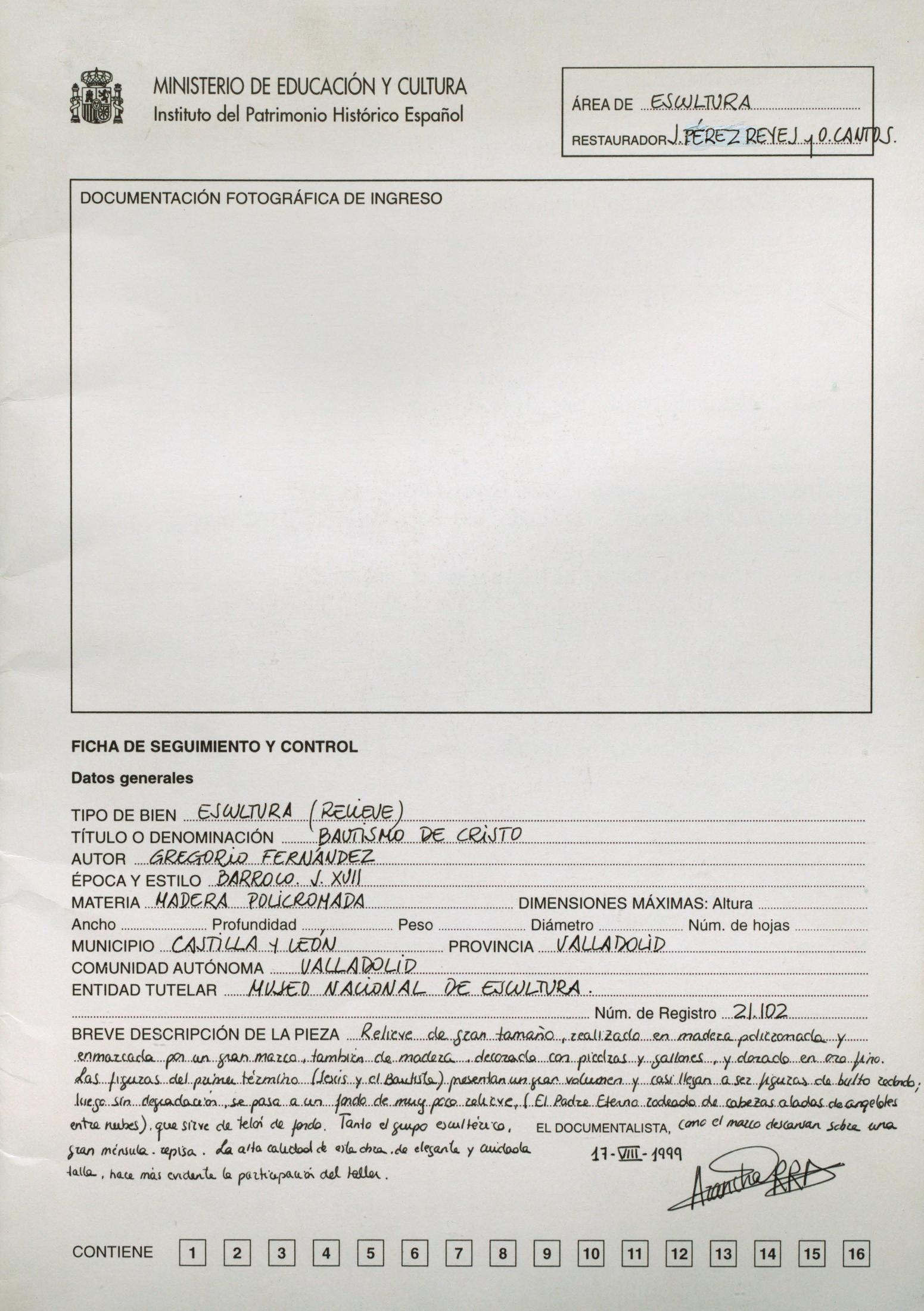 Restauración de una escultura en madera policromada del "Bautismo de Cristo", de Gregorio Fernández procedente del Museo Nacional de Escultura (Valladolid)
