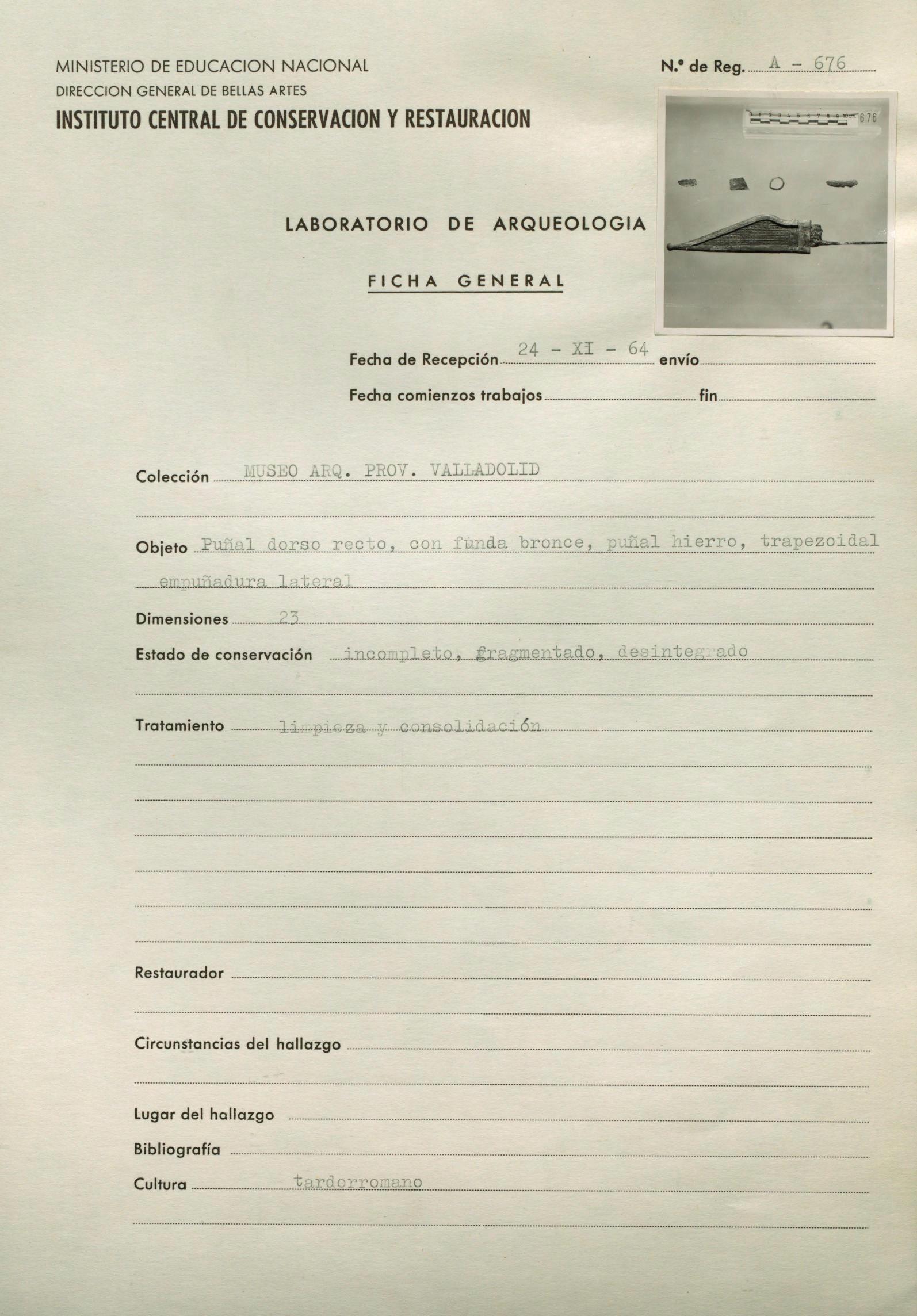 Restauración de puñales de metal procedentes del Museo Arqueológico de Valladolid