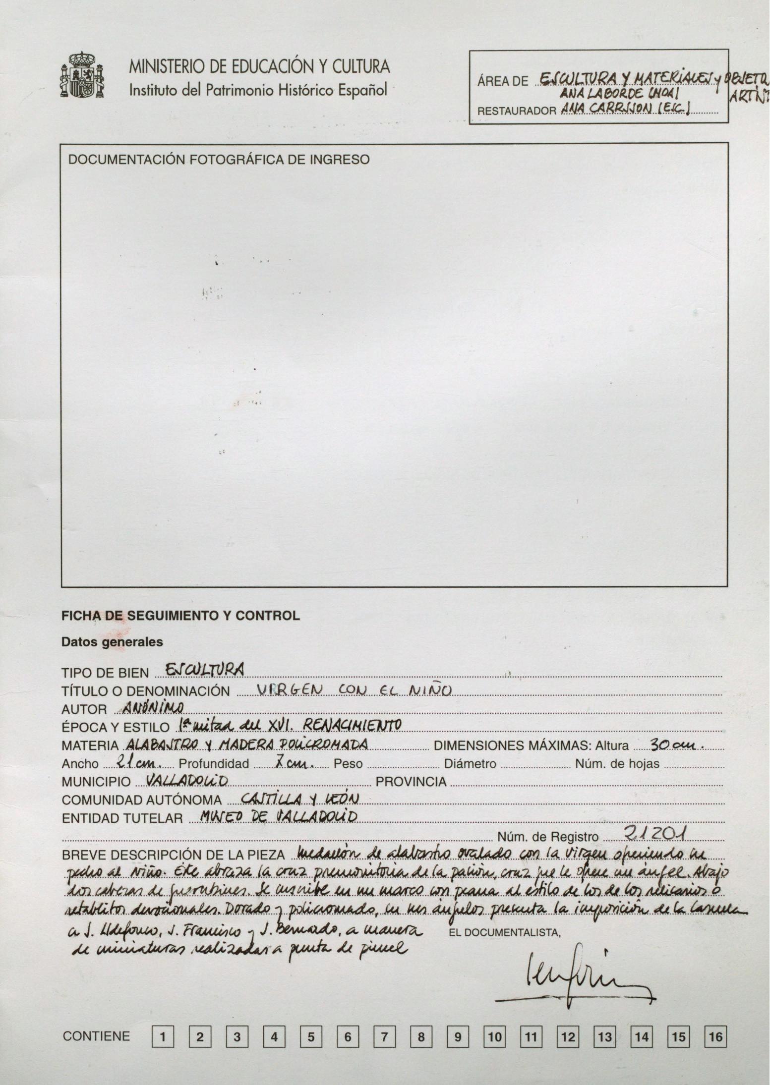 Restauración del medallón retablo de alabastro "Virgen con Niño", procedente del Museo de Valladolid