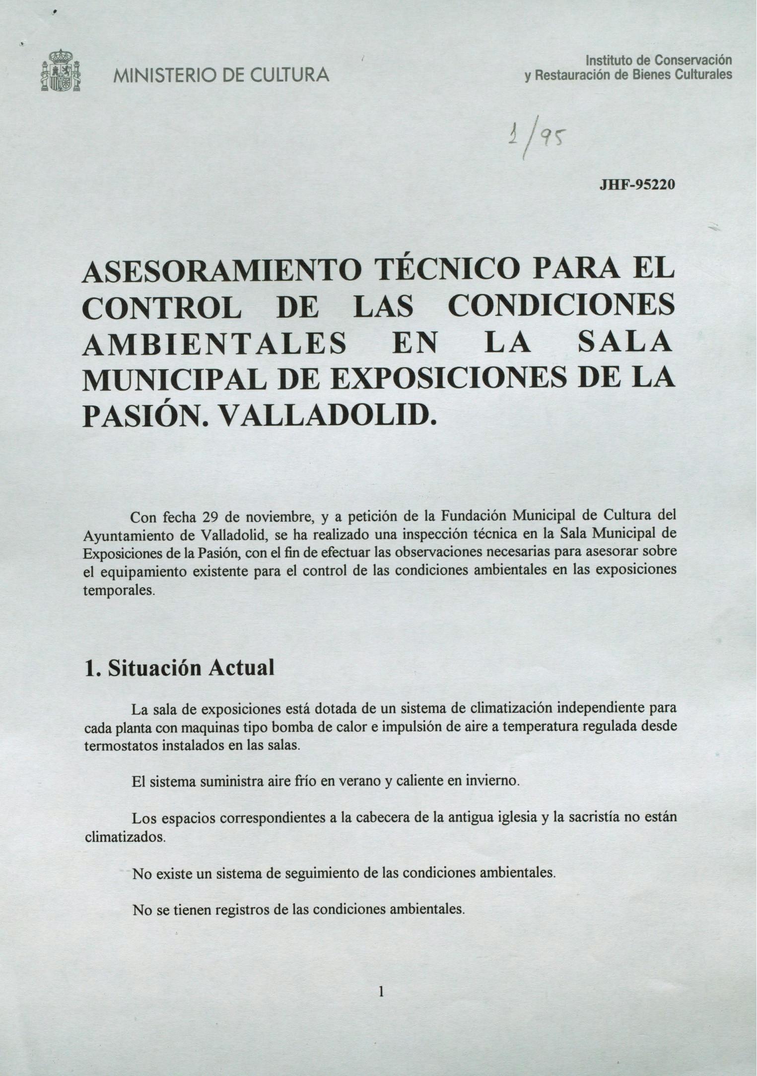 Informe de asesoramiento para el control de las condiciones ambientales en la Sala Municipal de exposiciones de la Pasión (Valladolid)