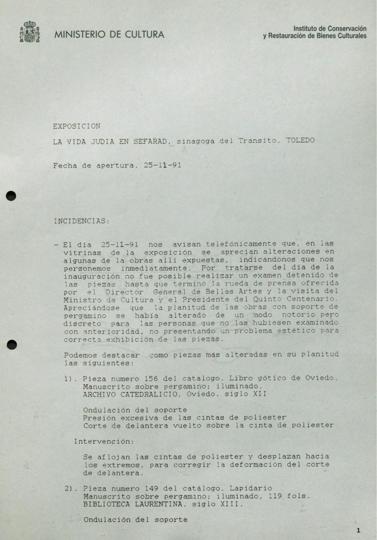 Exposición "La vida judía en Sefarad" organizada por la Comisión Quinto Centenario. Sinagoga del Tránsito de Toledo