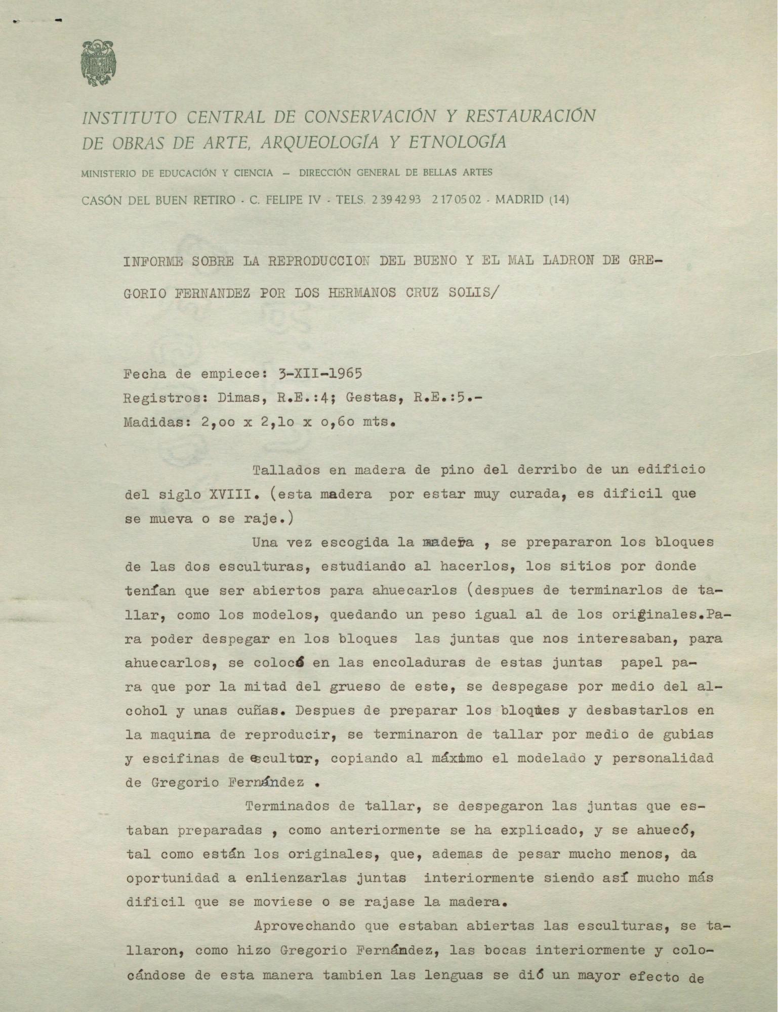 Informe sobre el proceso de reproducción de las esculturas de "El Buen y el Mal Ladrón", de Gregorio Fernández, procedentes del Museo Nacional de Escultura (Valladolid)