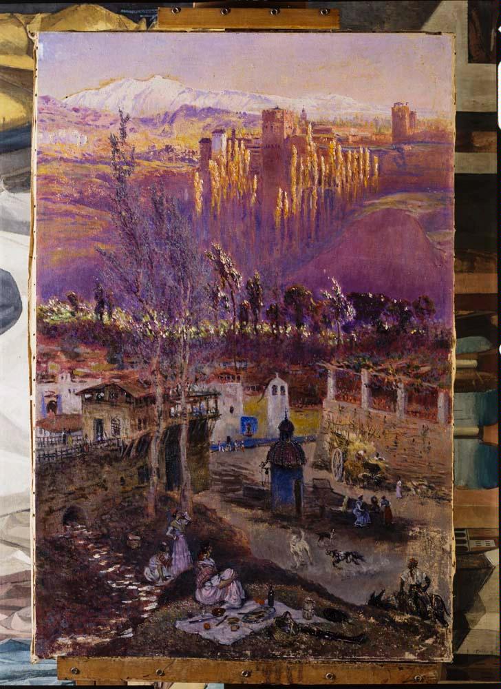 Restauración de la pintura "Vista de la Alhambra", de Muñoz Degrain, del Museo de Bellas Artes de Valencia