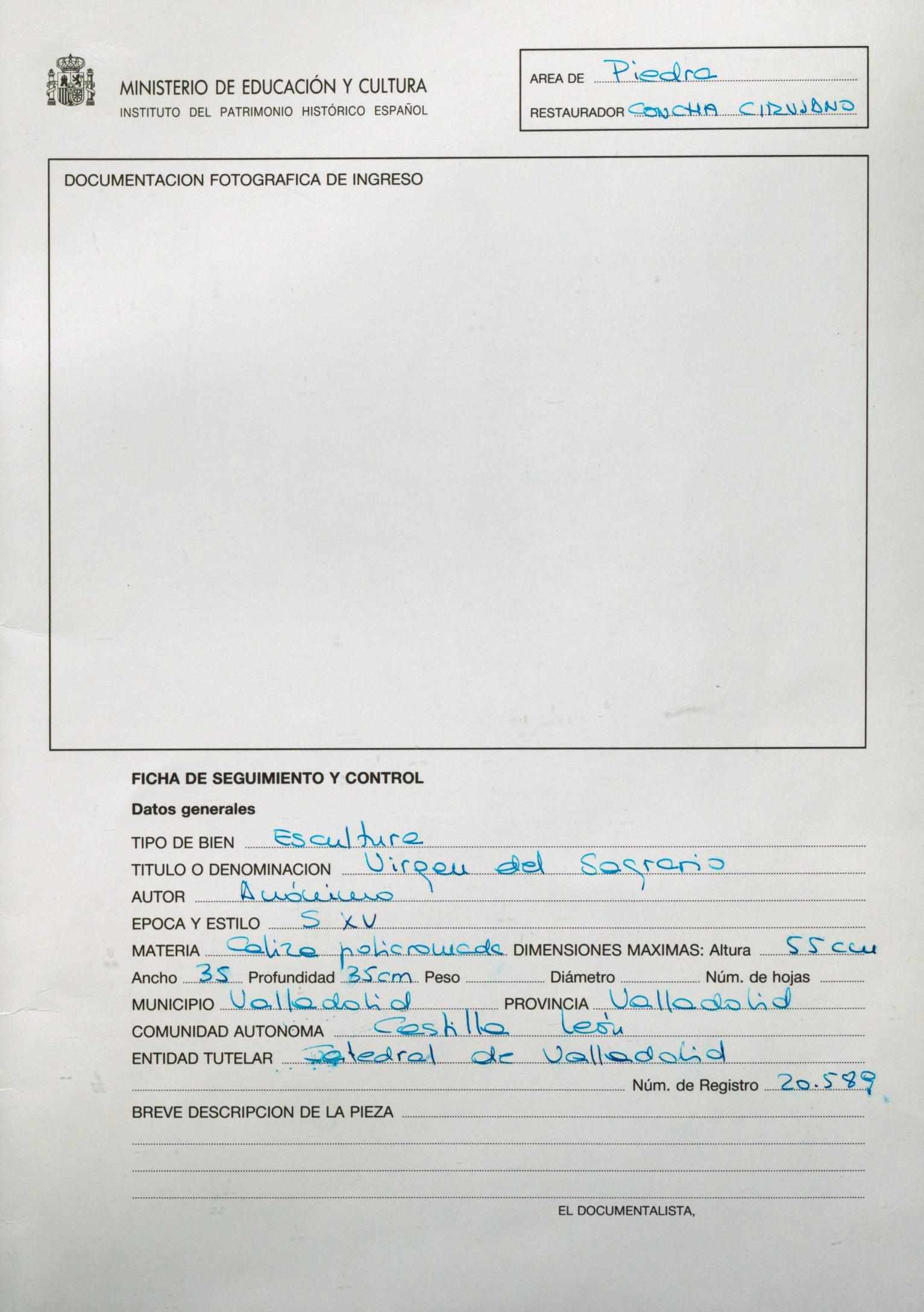 Restauración de una escultura en piedra policromada de "Nuestra Señora del Sagrario", procedente del Museo Diocesano y Catedralicio de Valladolid