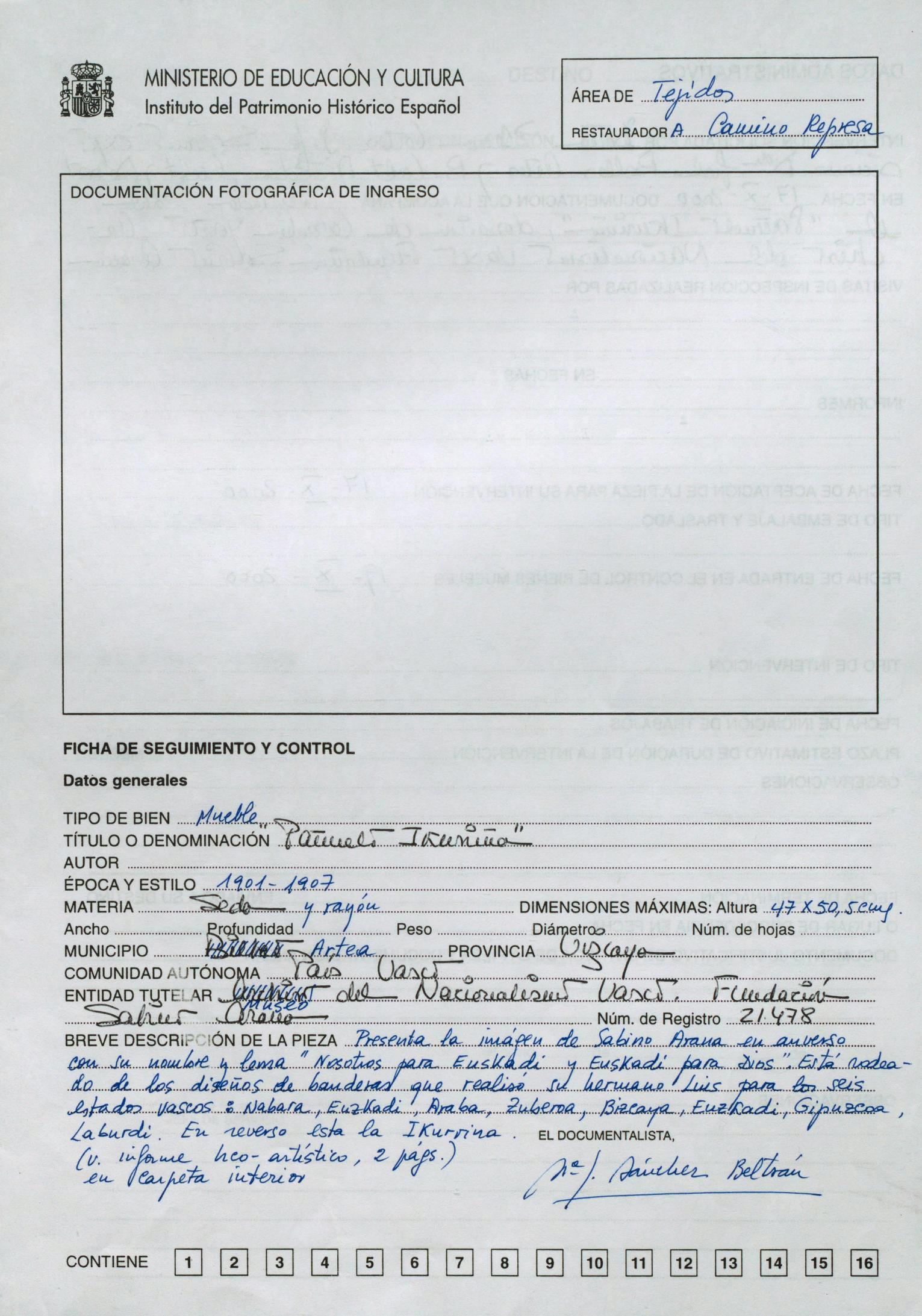 Restauración de un pañuelo con Ikurriña de seda, procedente de la Fundación Sabino Arana (Bilbao)