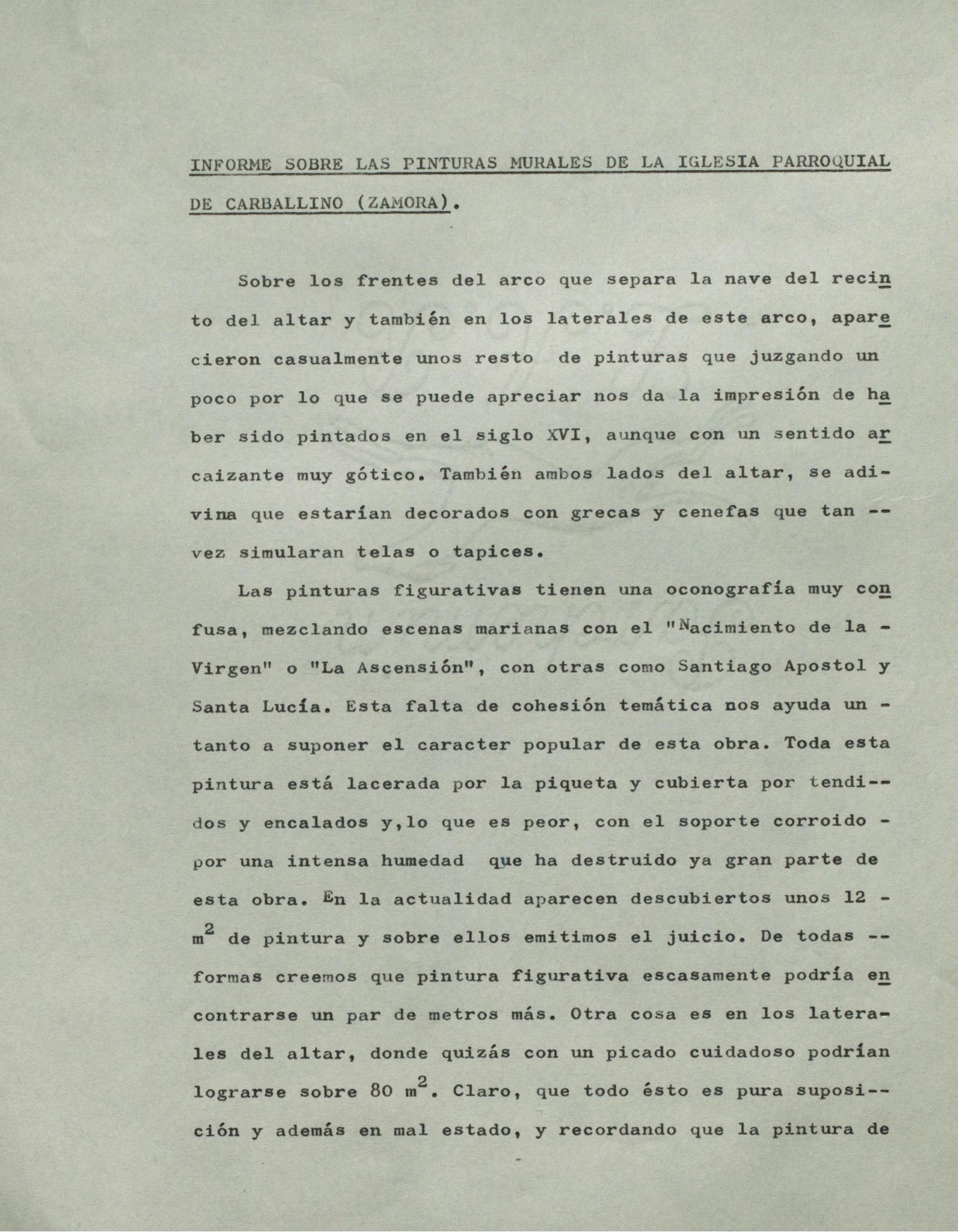 Informe de conservación de las pinturas al fresco del siglo XVI de la Iglesia parroquial de Carbellino (Zamora)