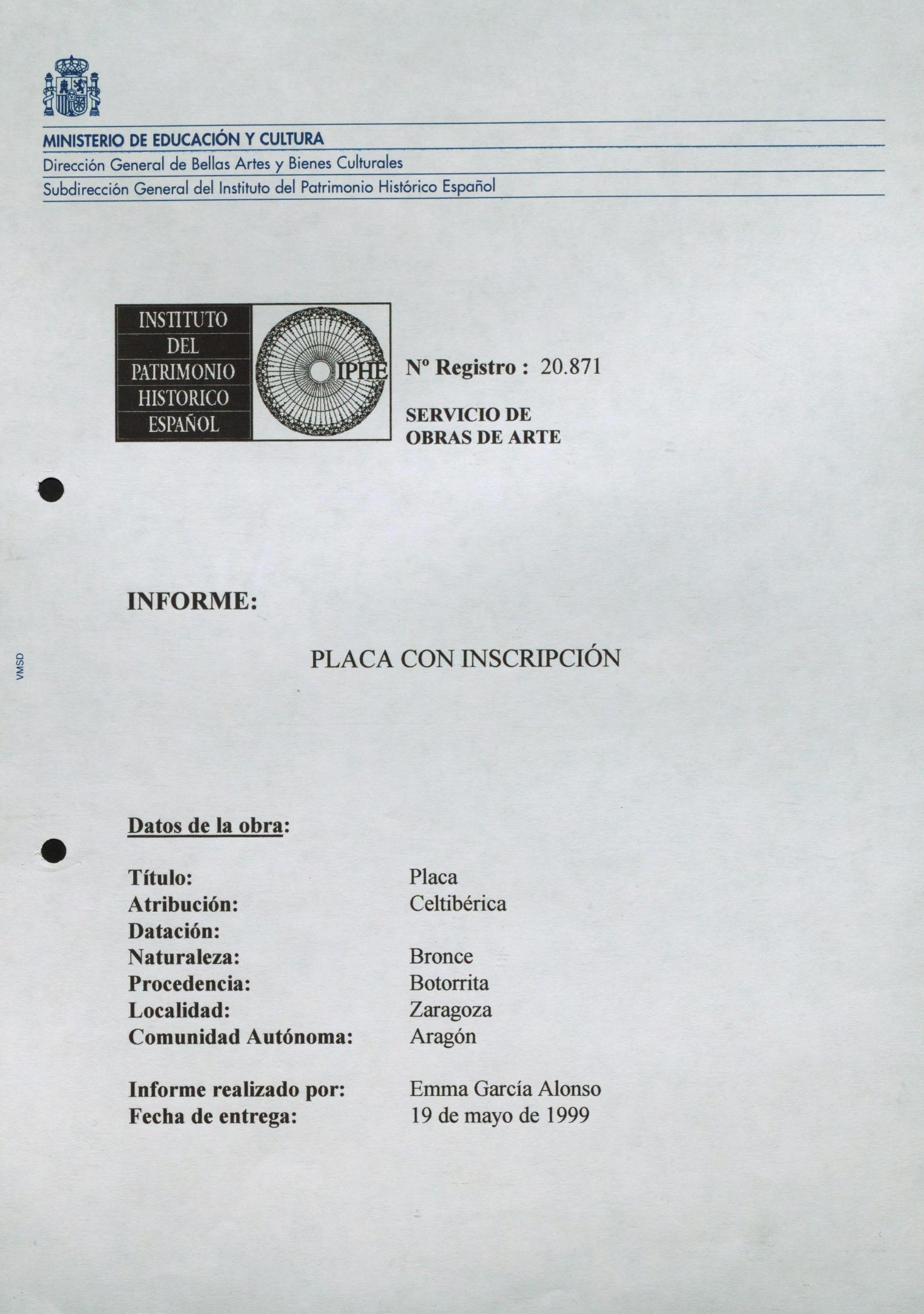 Restauración de una placa celtibérica de bronce, procedente de las excavaciones en Botorrita (Zaragoza)
