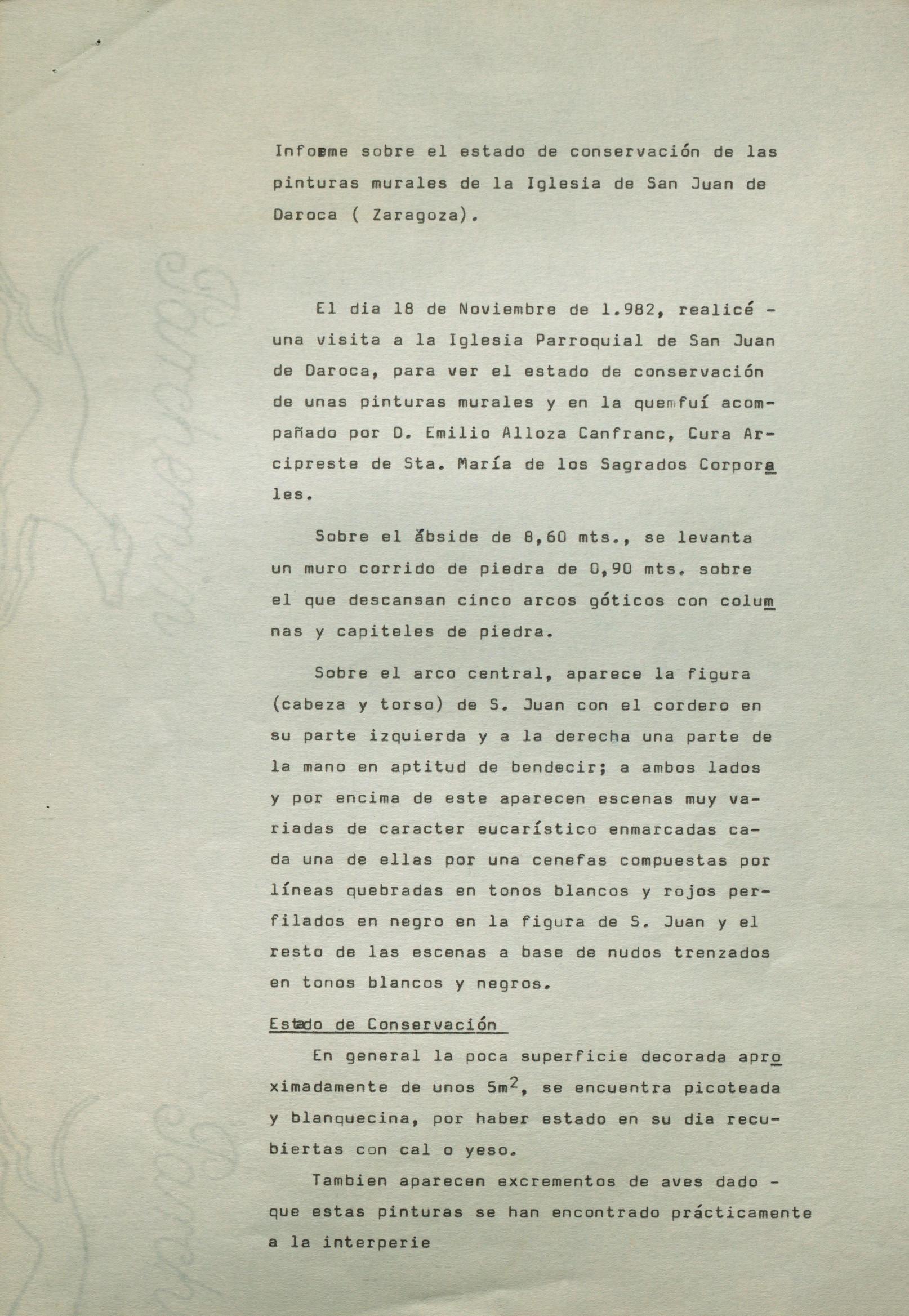Informe de visita para la restauración de las pinturas murales de la Iglesia de San Juan de Daroca (Zaragoza)