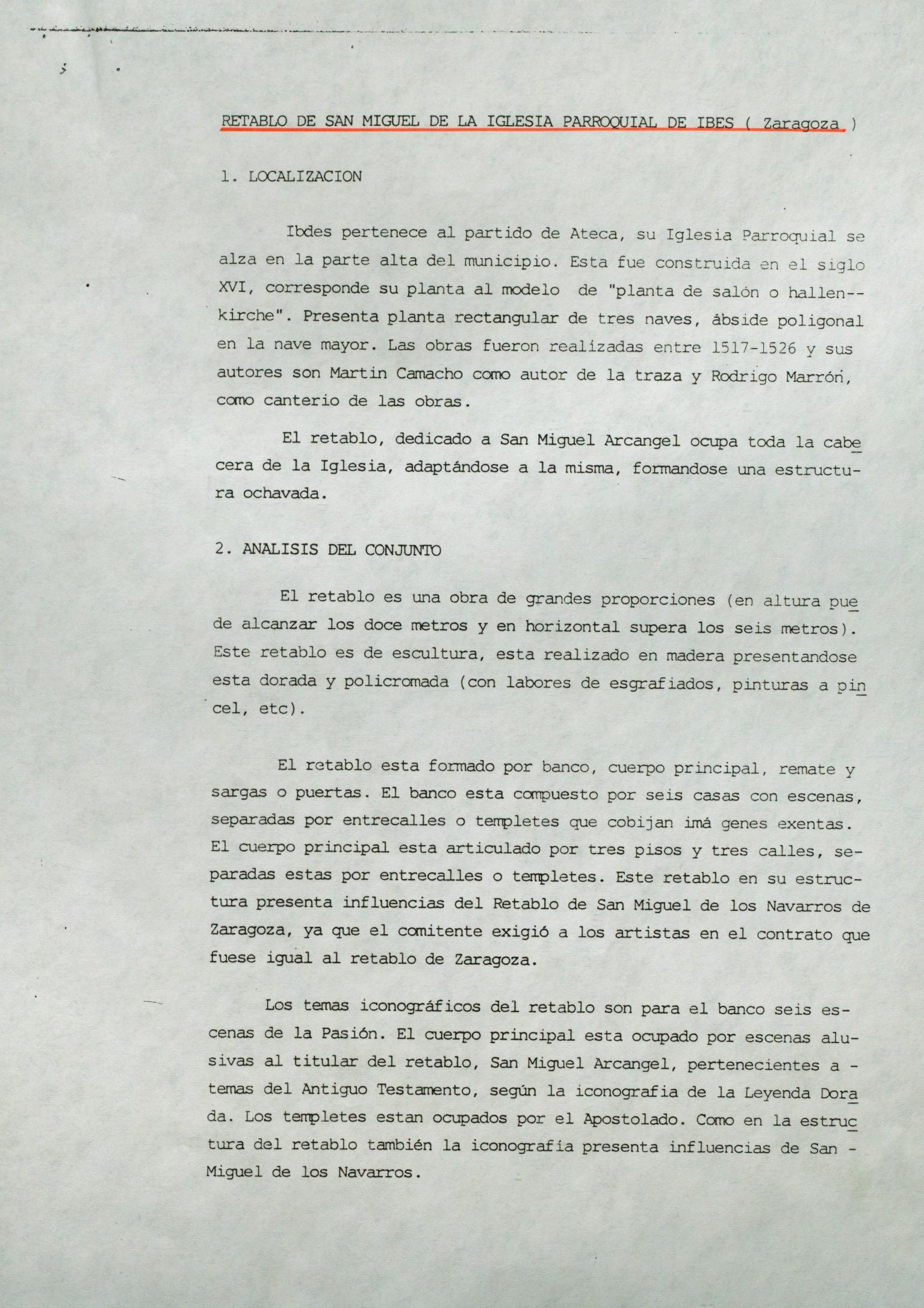 Informe de conservación del Retablo de San Miguel, del siglo XVI, procedente de la Iglesia parroquial de Ibdes (Zaragoza)