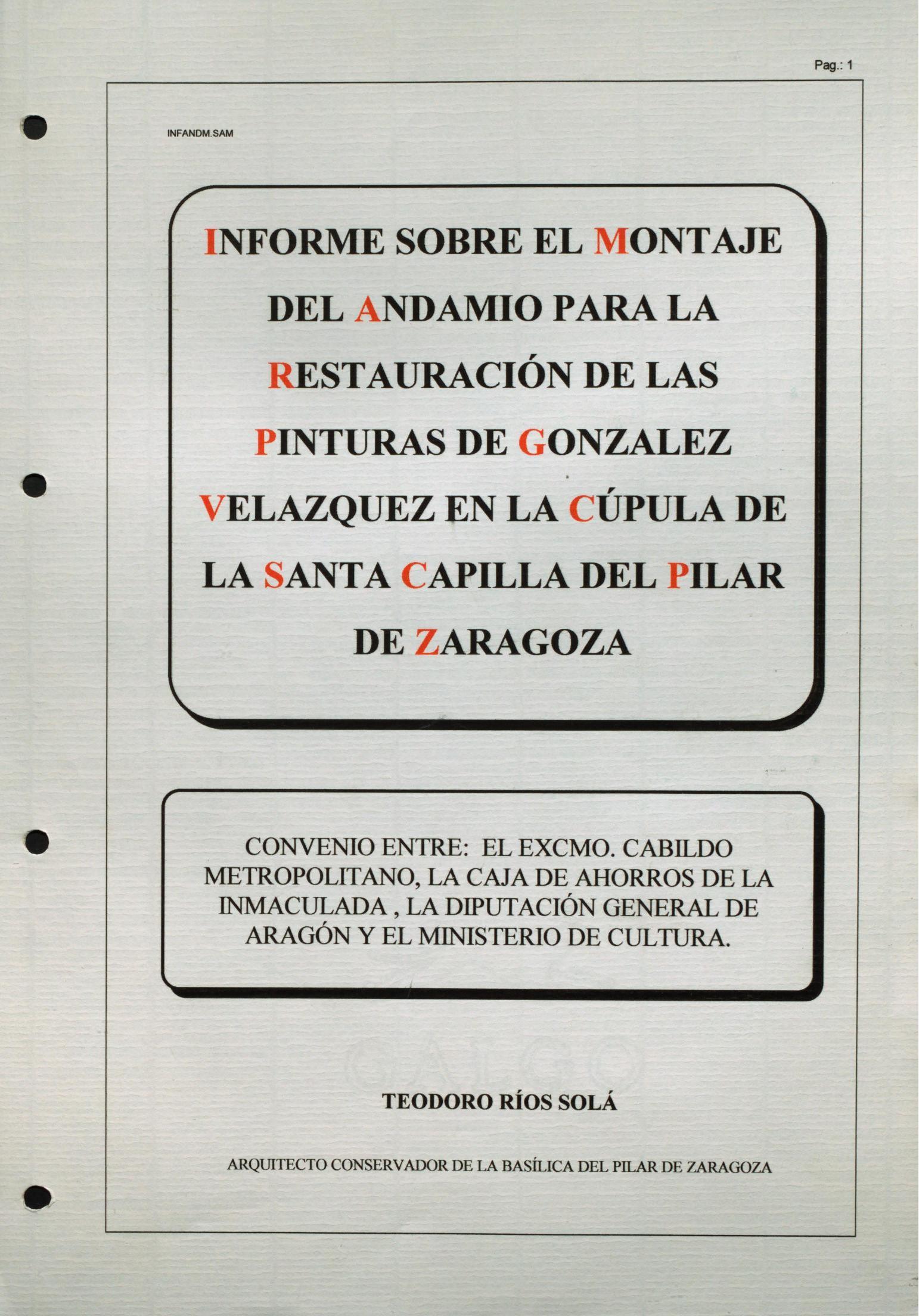 Informe sobre el montaje del andamio para la restauración de las pinturas de Antonio González Velázquez en la cúpula de la Santa Capilla de la Basílica del Pilar (Zaragoza)