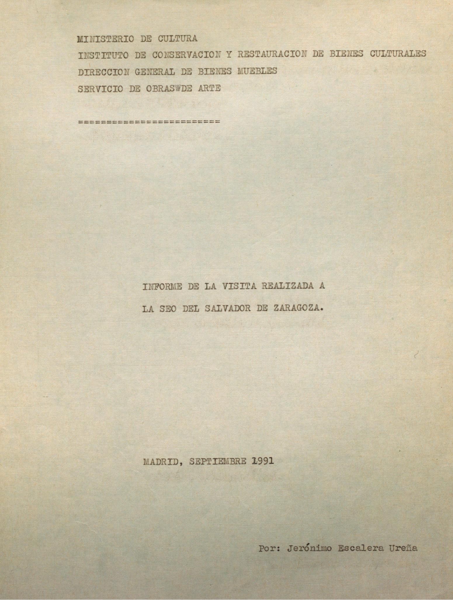 Informe de visita para inspeccionar las obras de restauración de la fachada Este de la Capilla de San Miguel, en la Seo del Salvador de Zaragoza