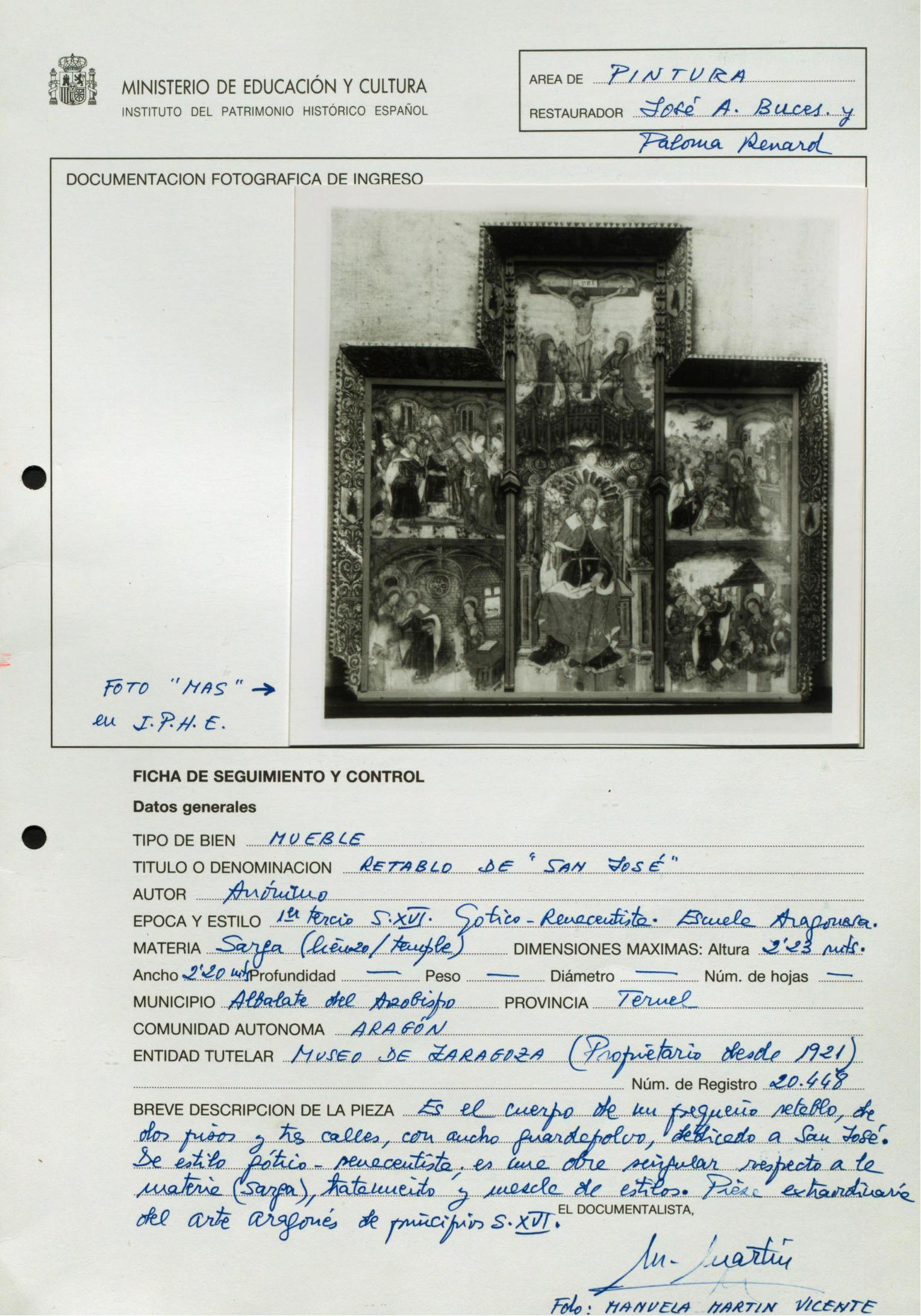 Buces Aguado, José Antonio / Restaurador ;